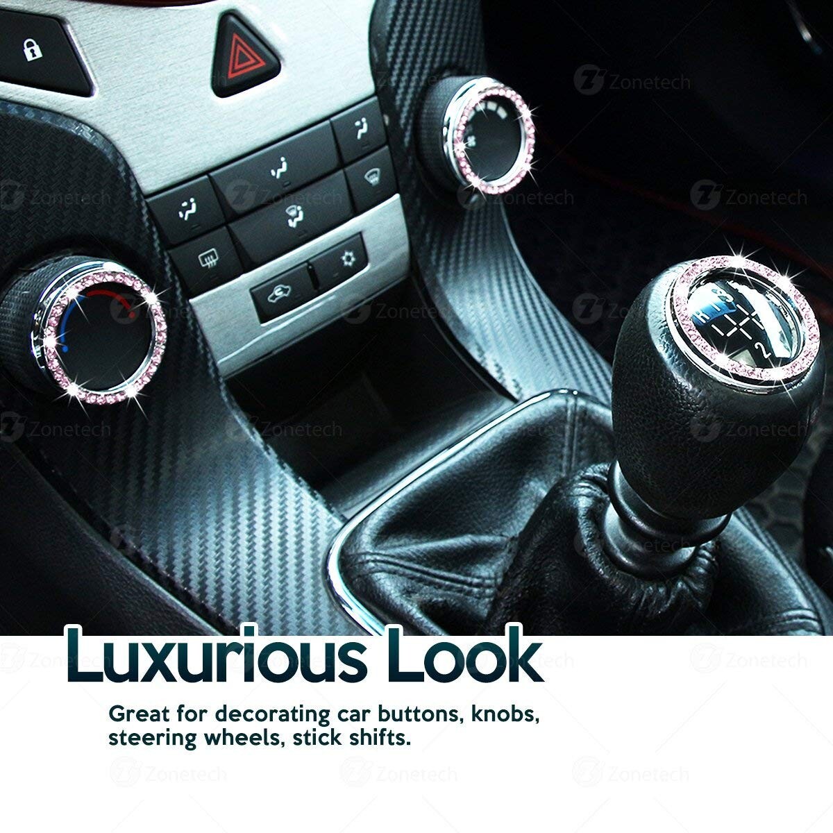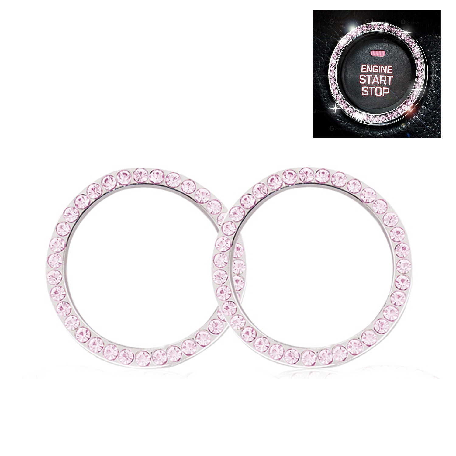 Zone Tech Car Bling Ring Emblem Sticker - Premium Quality Pink Crystal Bling Car Accessory for Auto Start Engine Ignition Button Key and Knobs 2- Pack