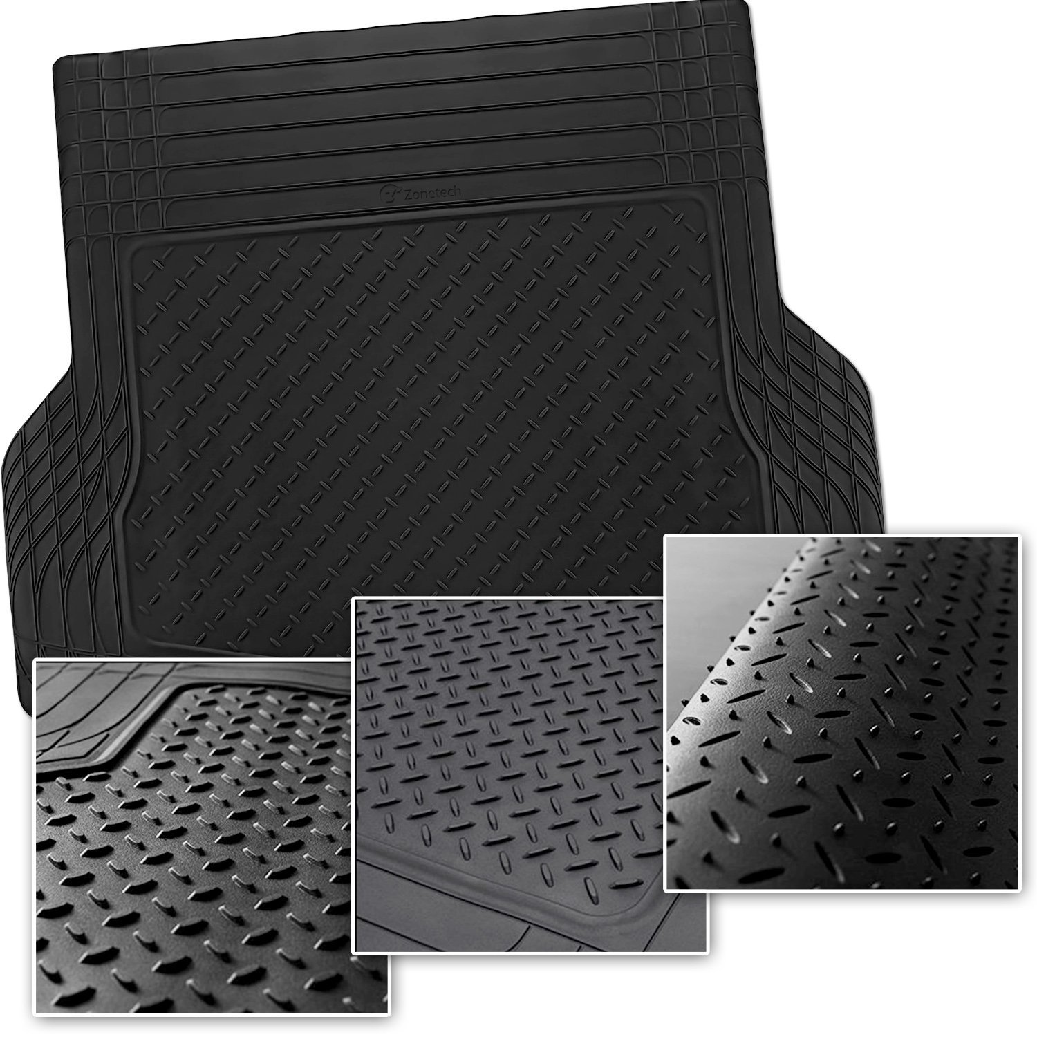 Zone Tech All Weather Rubber Semi Pattern Car Interior Floor Mats – 5-Piece Set Black Heavy Duty Car Interior Floor Mats