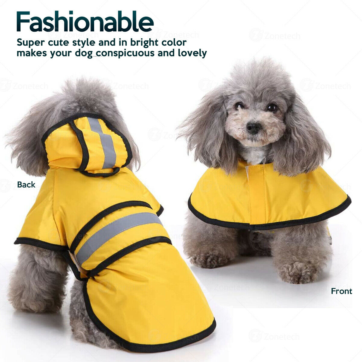 Zone Tech Dog Reflective Raincoat with Hood - Premium Quality Medium Size with Reflective Stripe Dog Poncho Protection from Rain