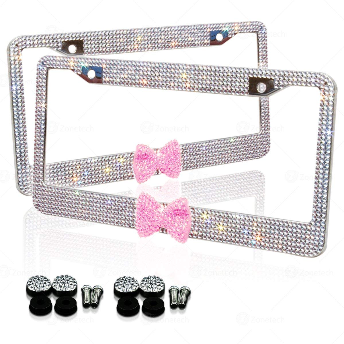 Zone Tech Shiny Bling License Plate Frame - Crystal Bling Premium Quality Novelty/License Plate Frame with Mounting Screws