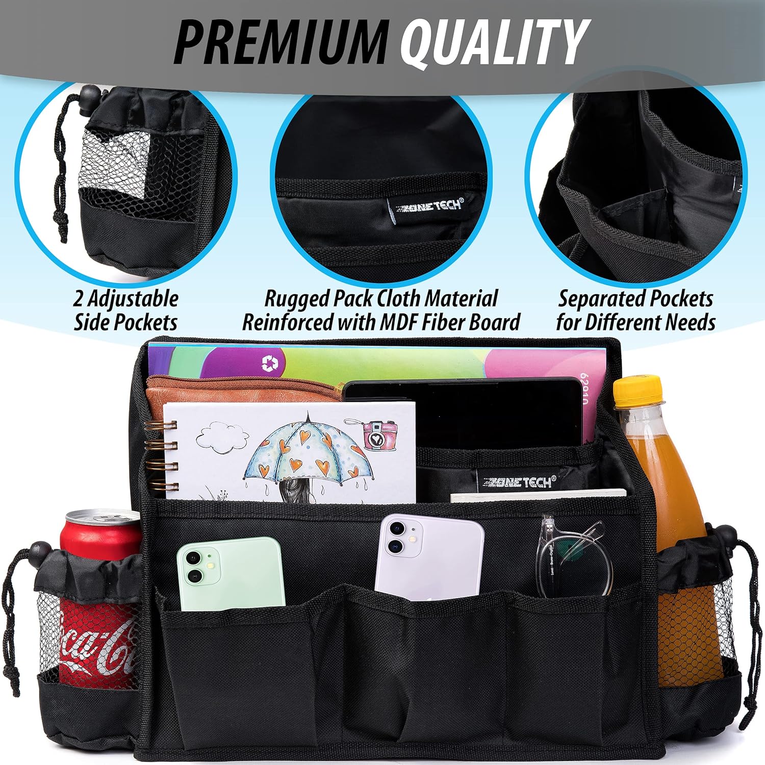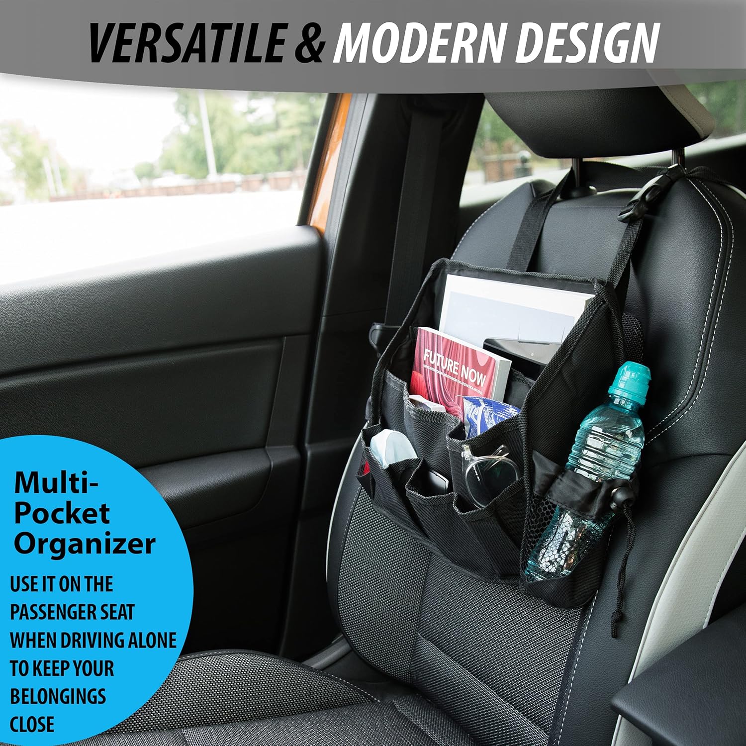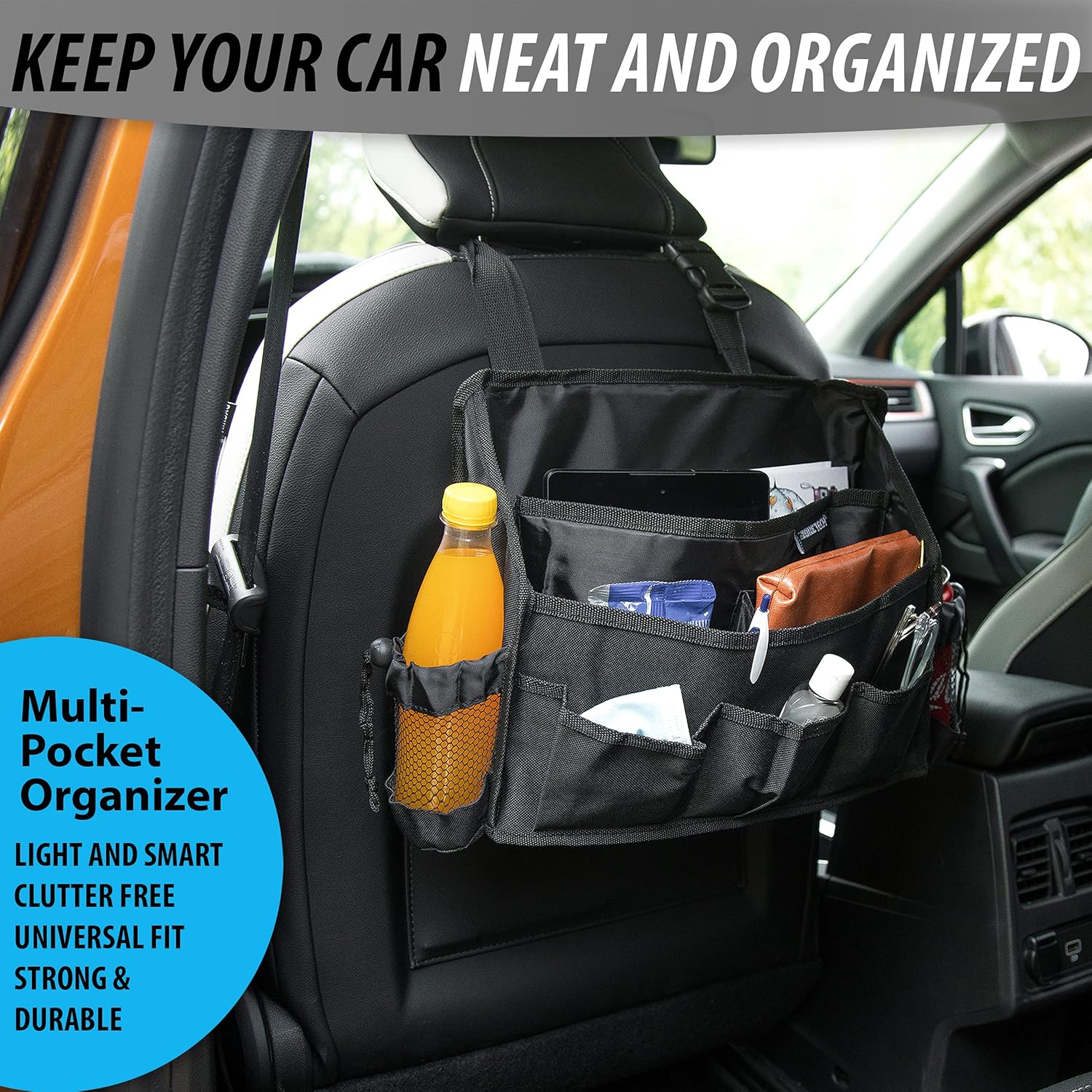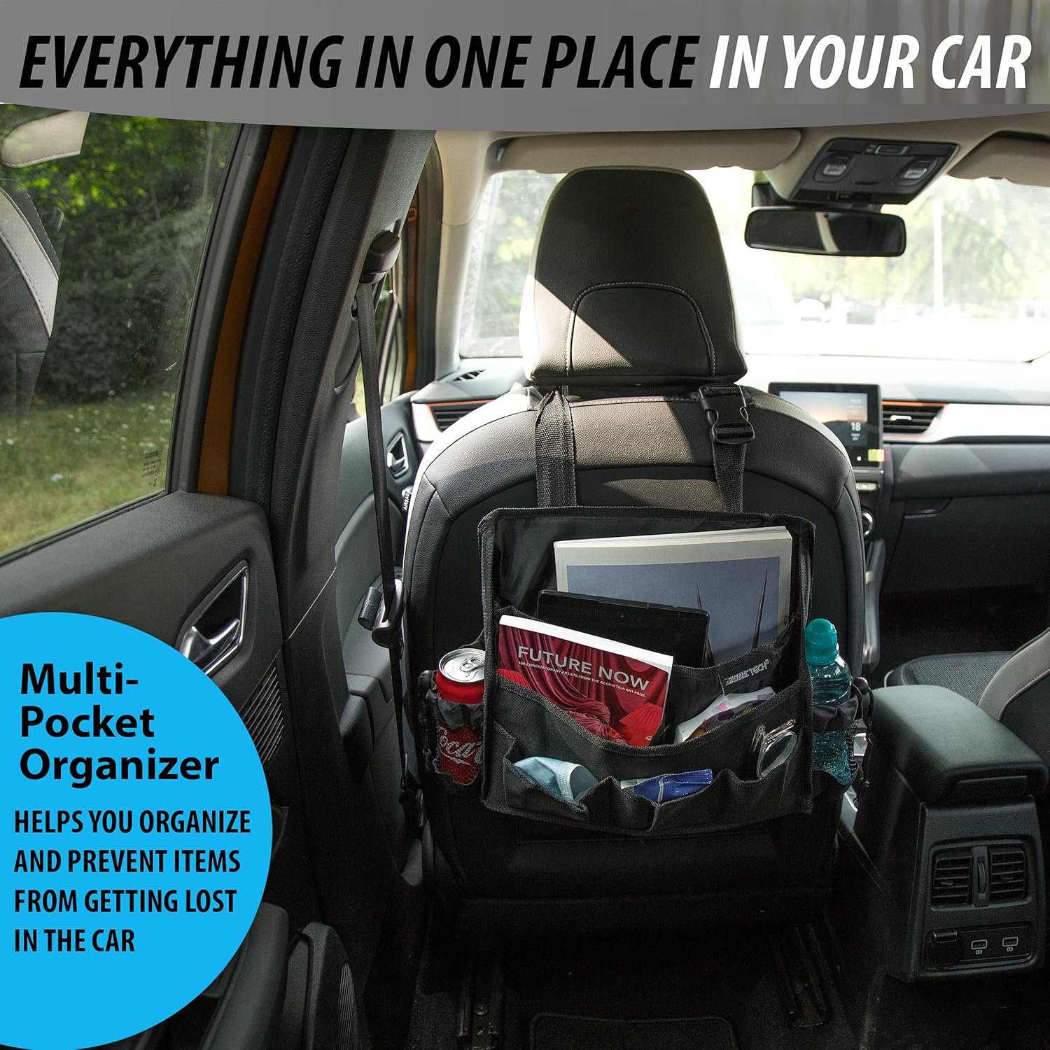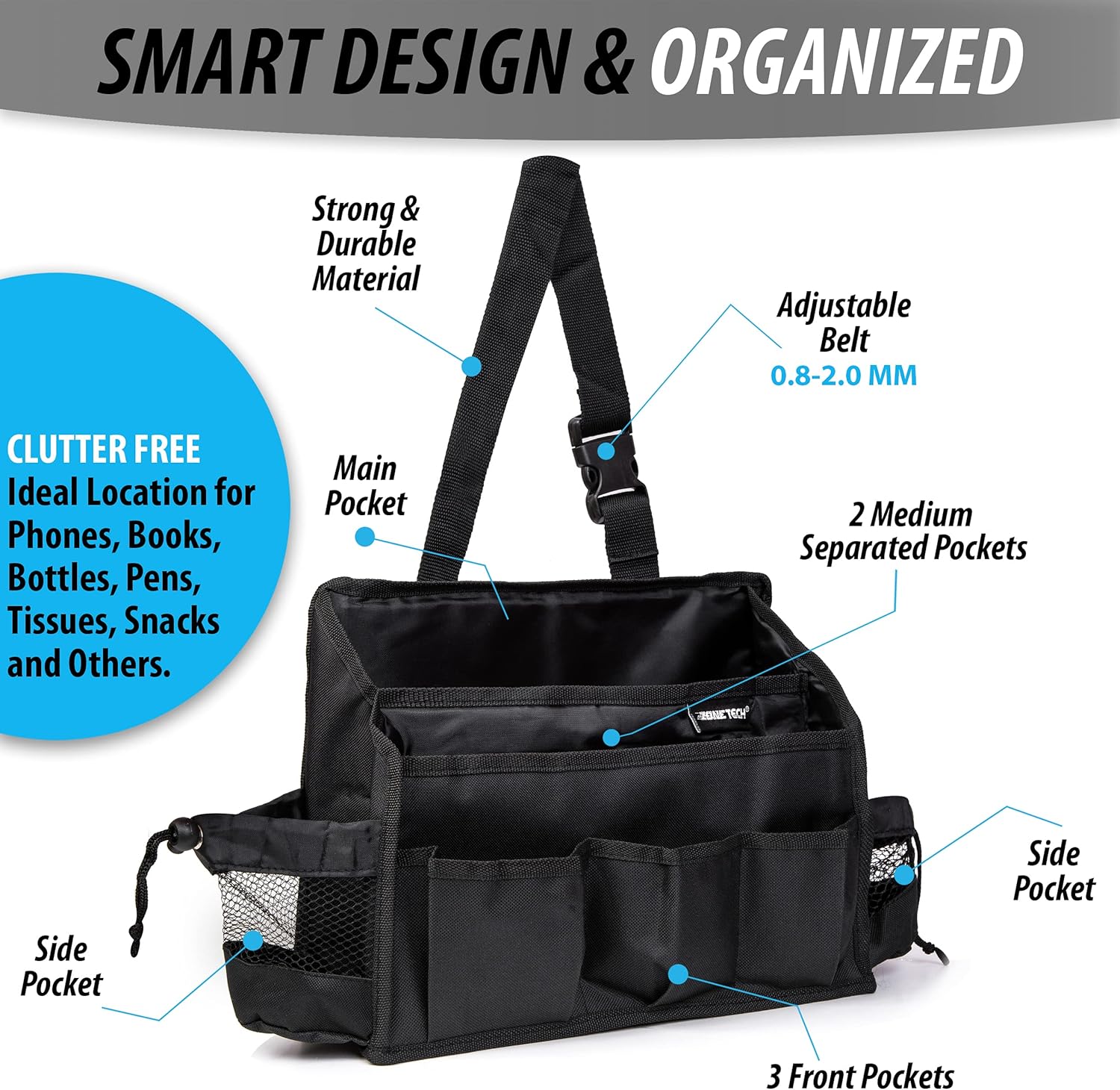 Zone Tech Portable Mini Car Garbage Can with Latch Grip – Classic Black Premium Quality Black Universal Traveling Portable Car Trash Can