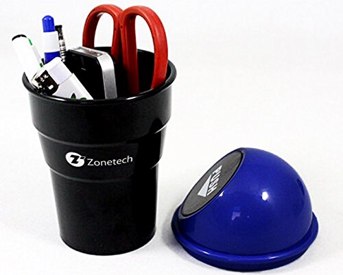 Zone Tech Portable Mini Car Garbage Can – Classic Black and Blue Premium Quality Black Universal Traveling Portable Car Trash Can