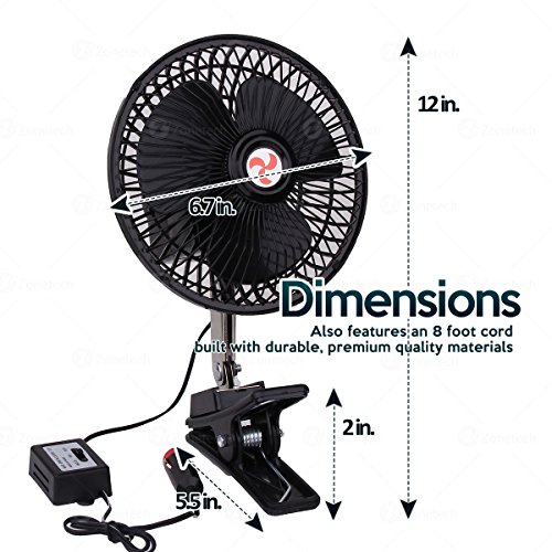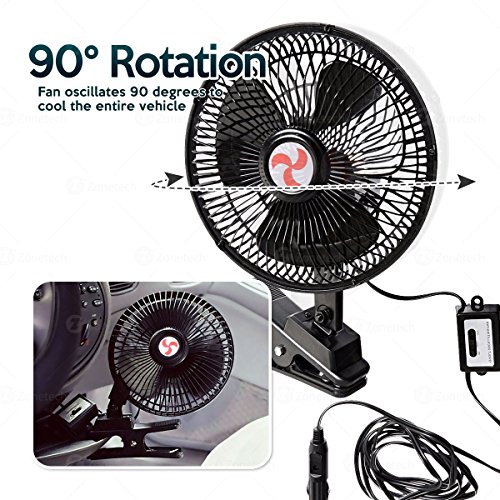Zone Tech 2-Pack 12V Oscillating Fan - Includes clamp and Screws for Easy Attachment to either the Console or Dash