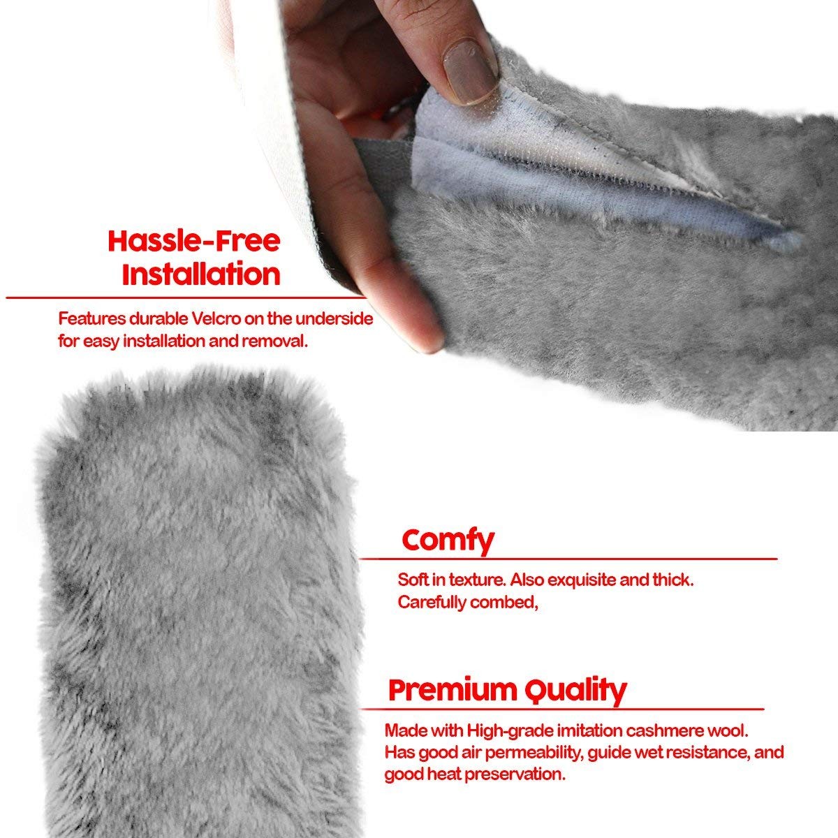 Soft Seat Belt Pad Cover - Zone Tech Gray Traveling Bag Shoulder Strap Comfortable Universal Fit Car Safety Seat Belt Faux Sheepskin Cover - 2 pk