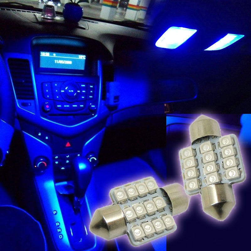 Zone Tech 2x Blue 31mm 12 Smd LED Dome Map Car Interior Festoon Bulbs Light