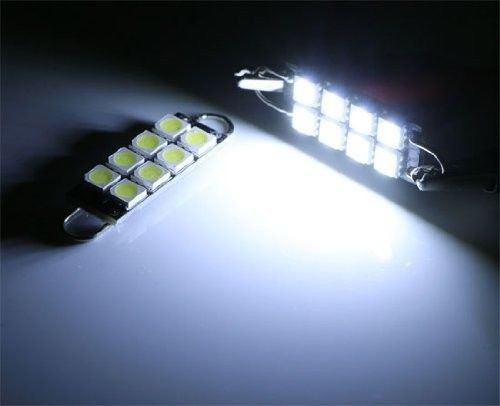 Zone Tech 2x Bright White LED Bulbs 8 SMD Festoon lights 42mm to 44mm Rigid Loop