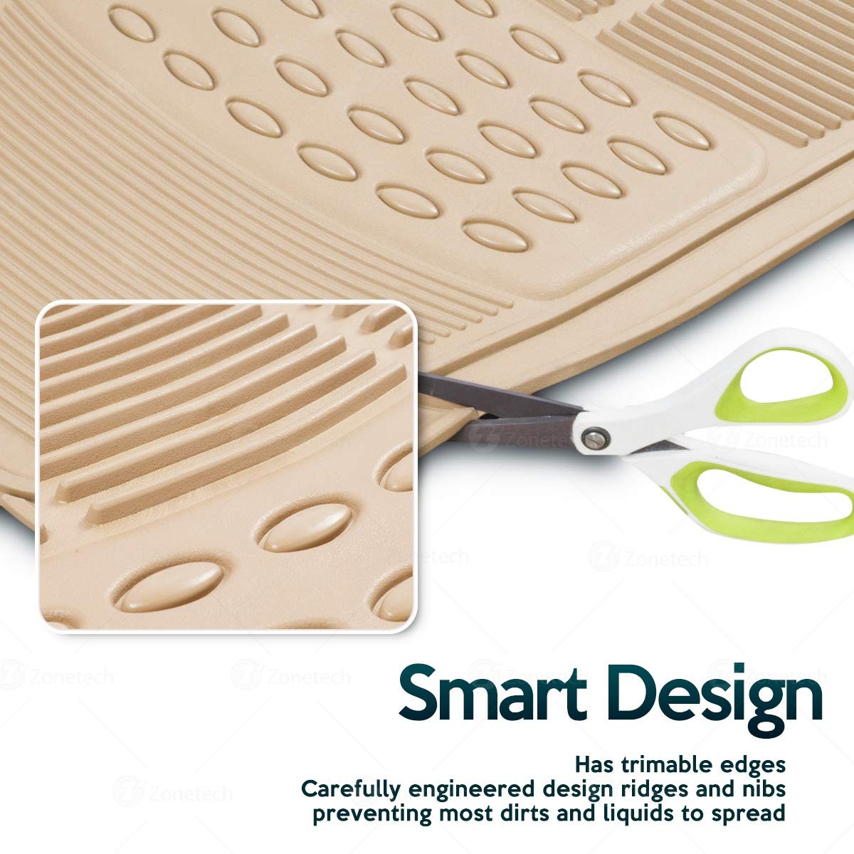 ODORLESS - The Zone Tech car floor mat is 100% odorless, no more rubber smell that cause headache. The Zone Tech floor mat has also no overwhelming petrol odors...View More - Specification