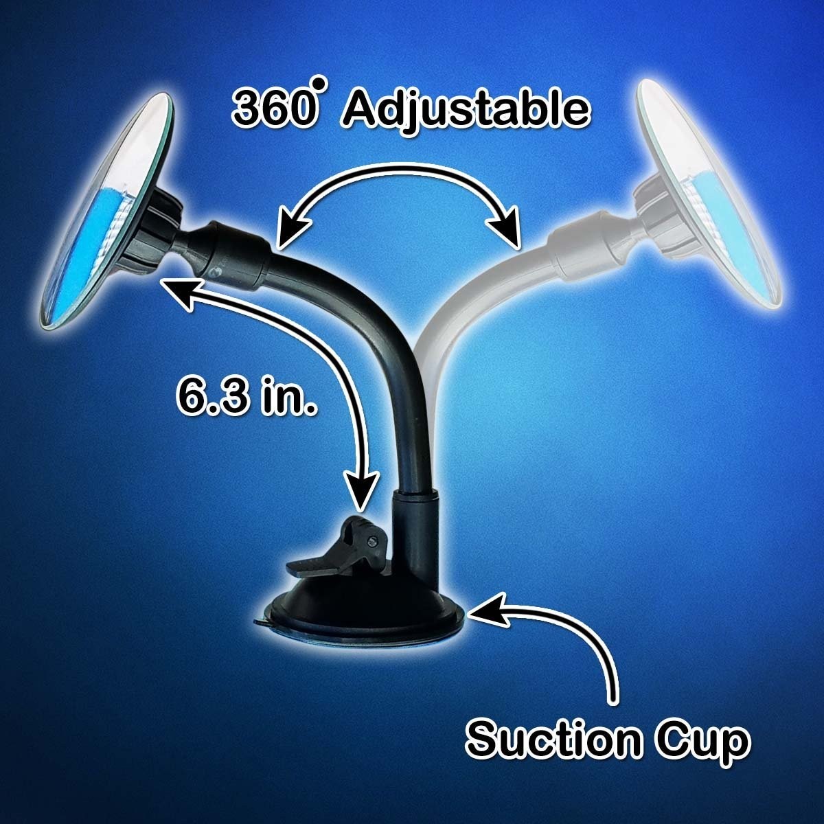 Zone Tech Adjustable Round Blind Spot Mirror - 2-Pack Long Arm HD Glass Convex Wide Angle Rear View Universal Fit Lens