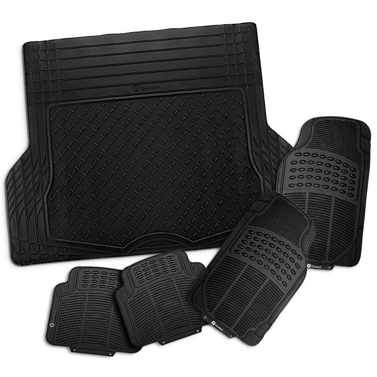 Zone Tech All Weather Rubber Semi Pattern Car Interior Floor Mats – 5-Piece Set Black Heavy Duty Car Interior Floor Mats