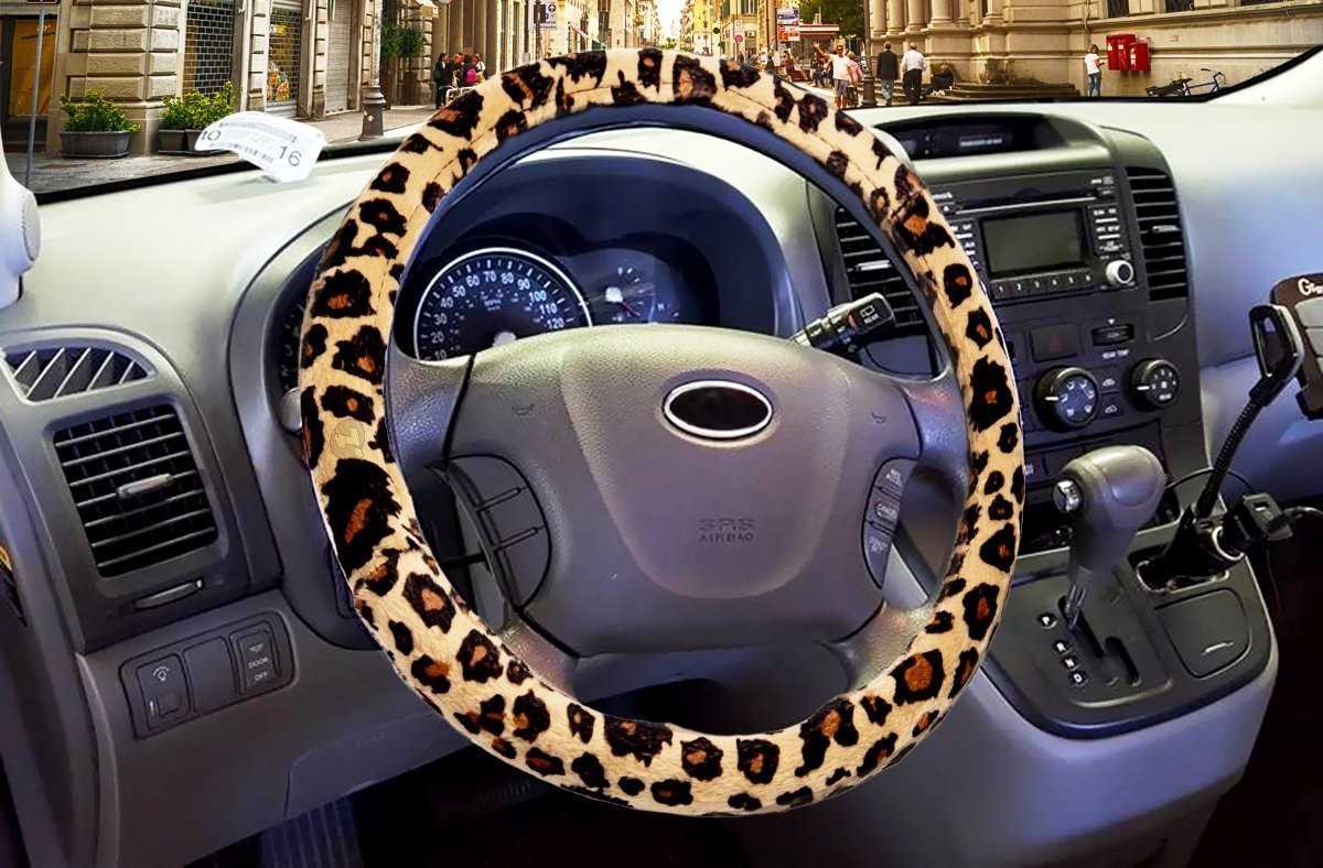 Cheetah Sheepskin Steering Wheel Cover+ Seat Belt Cover