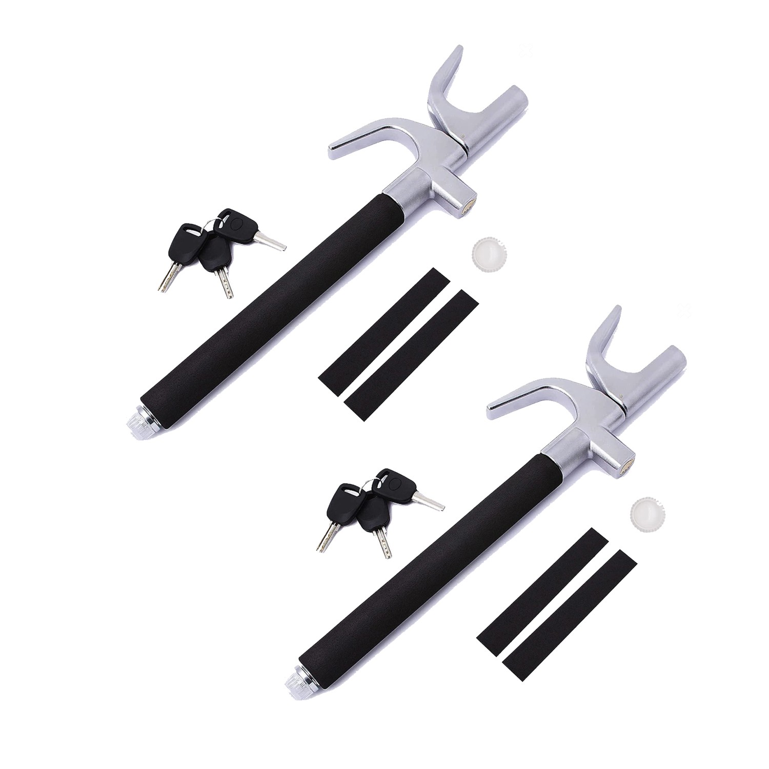 Zone Tech Anti-Theft Car Steering Wheel Lock - 2 Pack Premium Quality Vehicle Universal Fit Adjustable Length Clamp Double Hook Retractable Steering Lock with Escape Hammer Window Breaker & 3 Keys – Car Truck