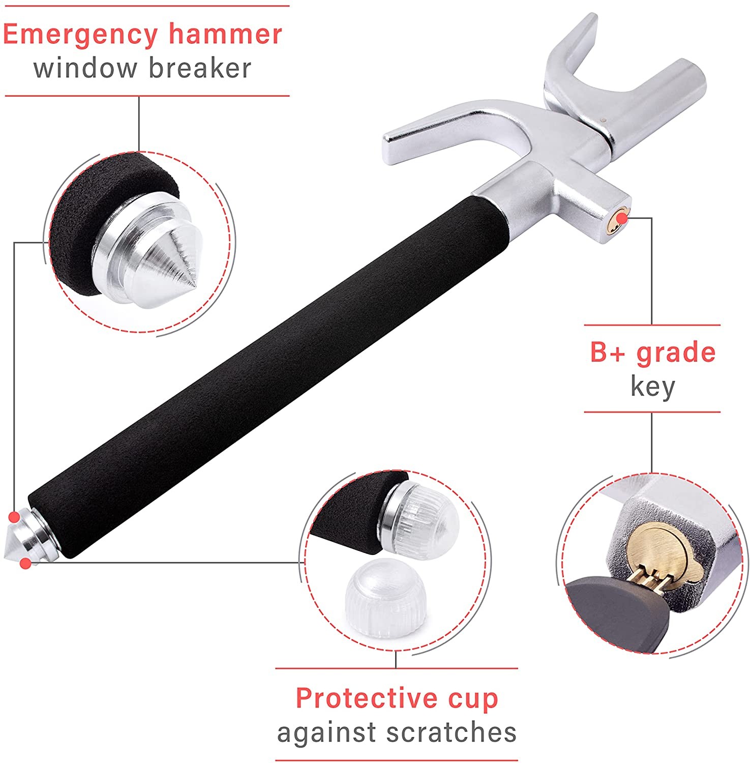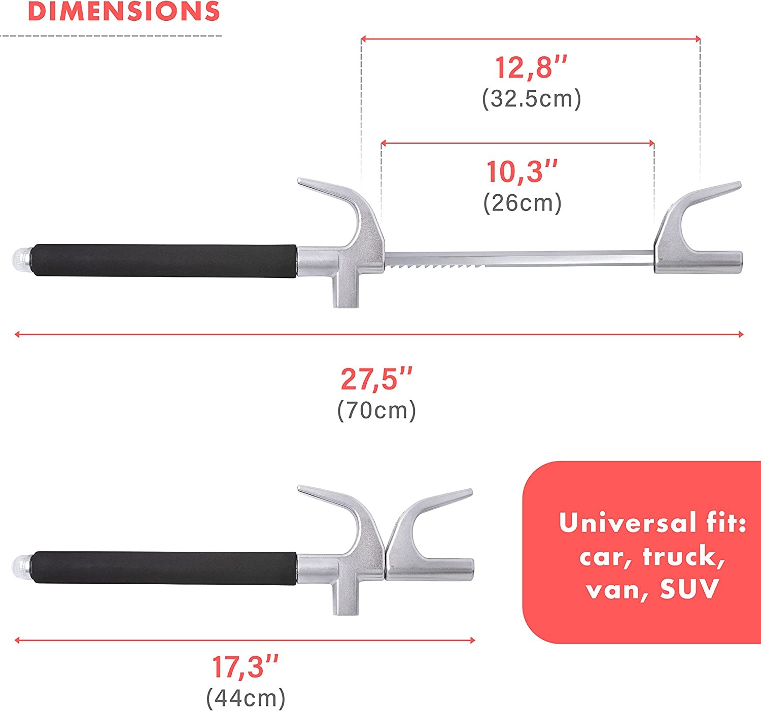 Zone Tech Anti-Theft Car Steering Wheel Lock - Premium Quality Vehicle Universal Fit Adjustable Length Clamp Double Hook Retractable Steering Lock with Escape Hammer Window Breaker & 3 Keys – Car Truck
