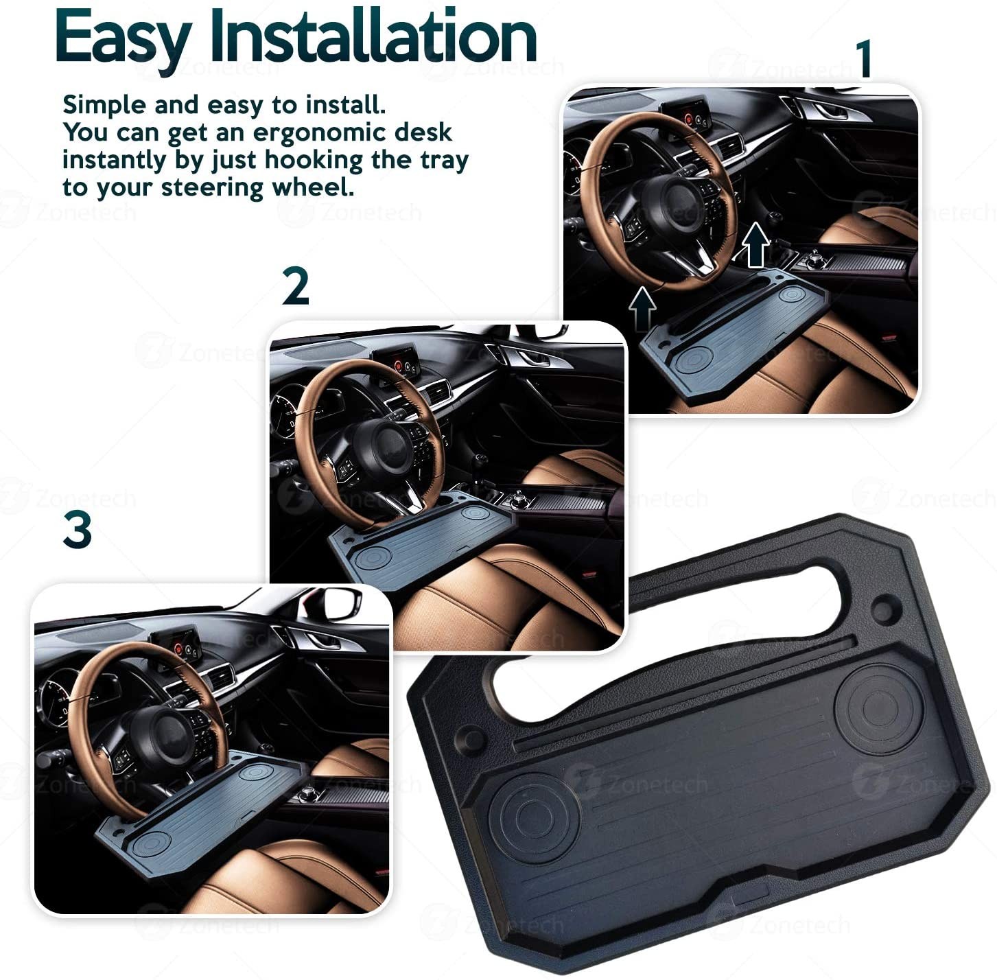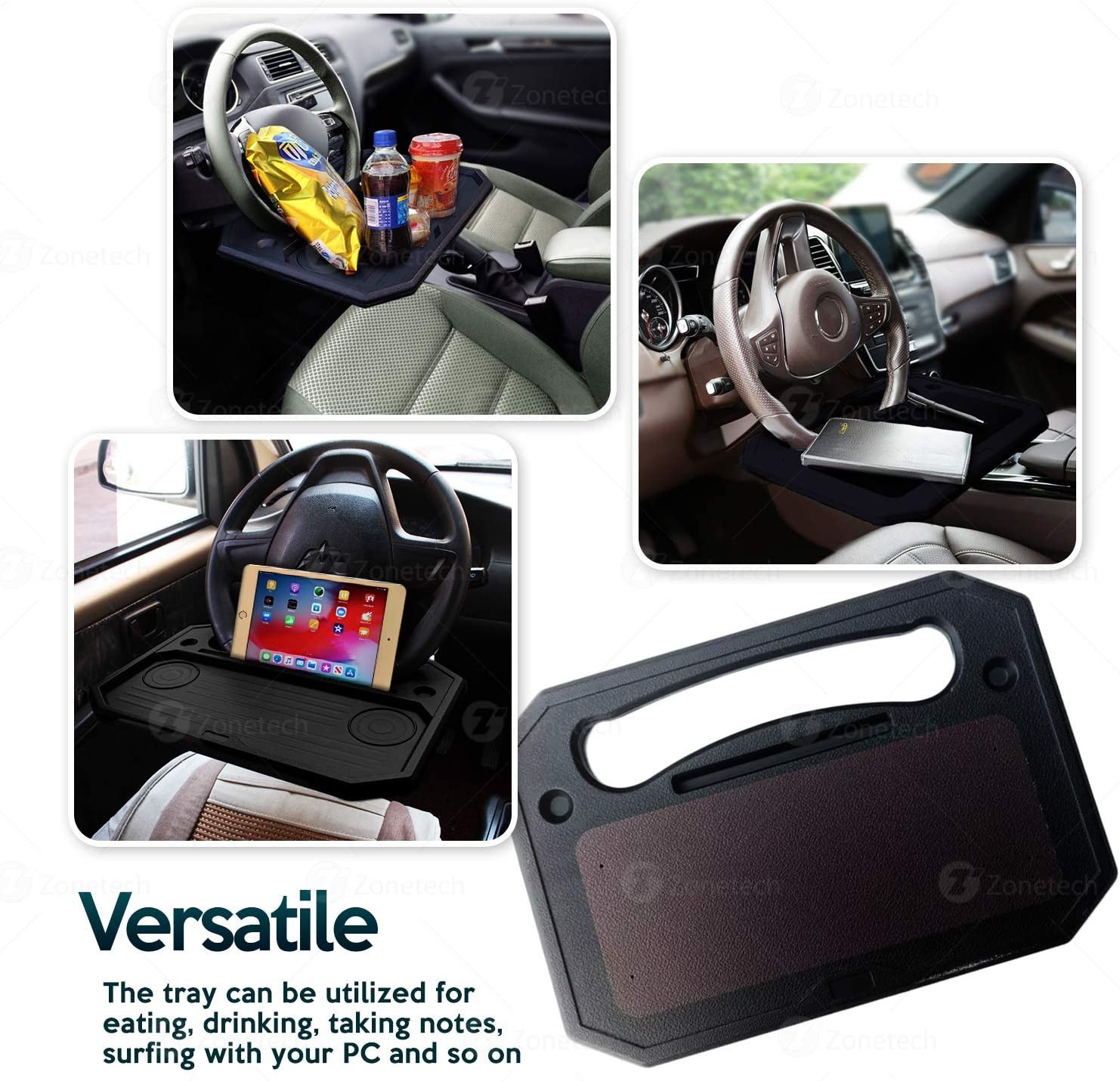 Zone Tech Auto Steering Wheel Tray Desk - Multi-Functional Black Portable Vehicle Laptop, IPad, Notebook, Tablet, and Food Eating Table for Drivers - Fits Most Steering Wheels