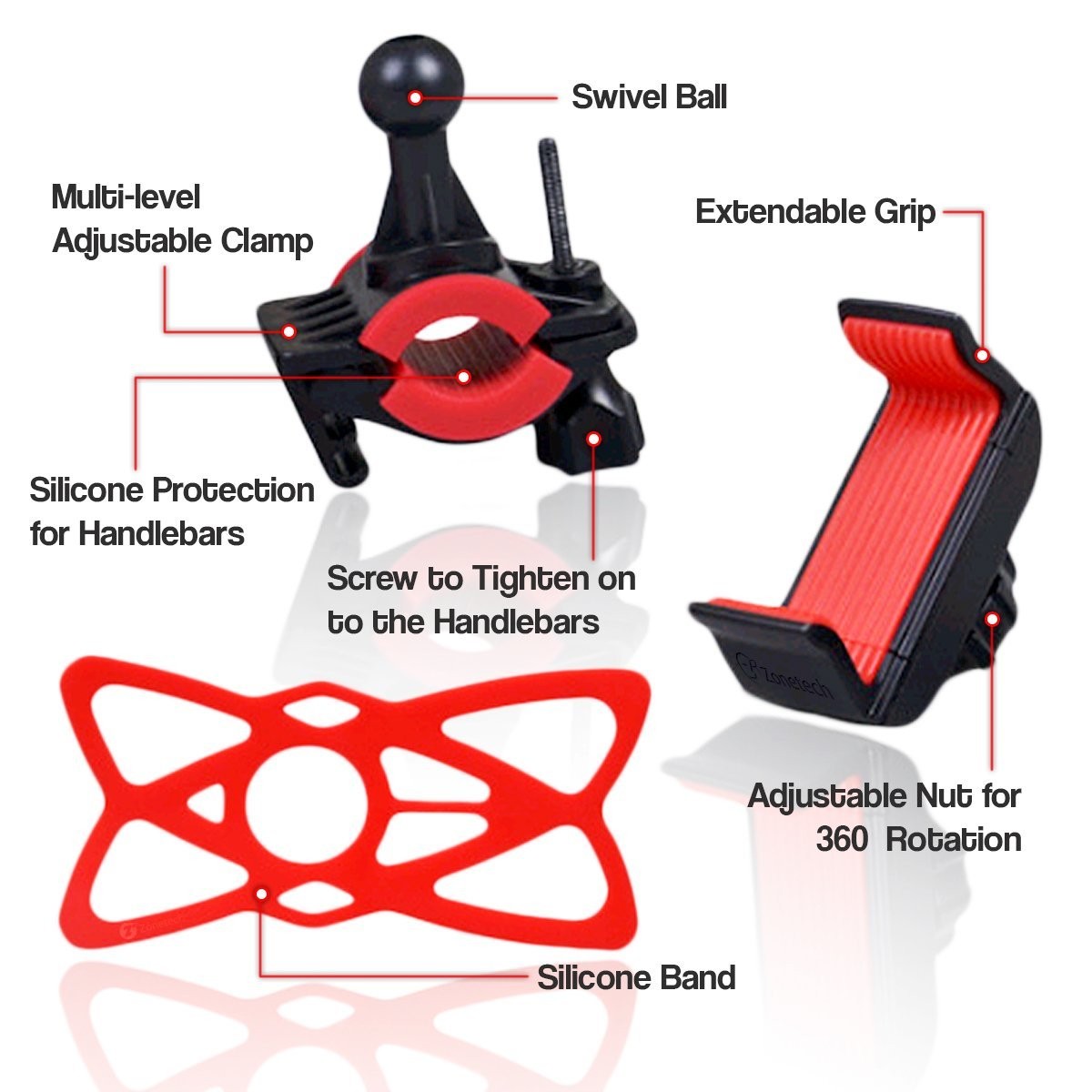 Zone Tech Bike and Motorcycle Cell Phone Mount - Adjustable Holder Mount for Smart phones, iPods and most GPS with Adjustable Firm Grip to fit your mobile up to 3.7 inches
