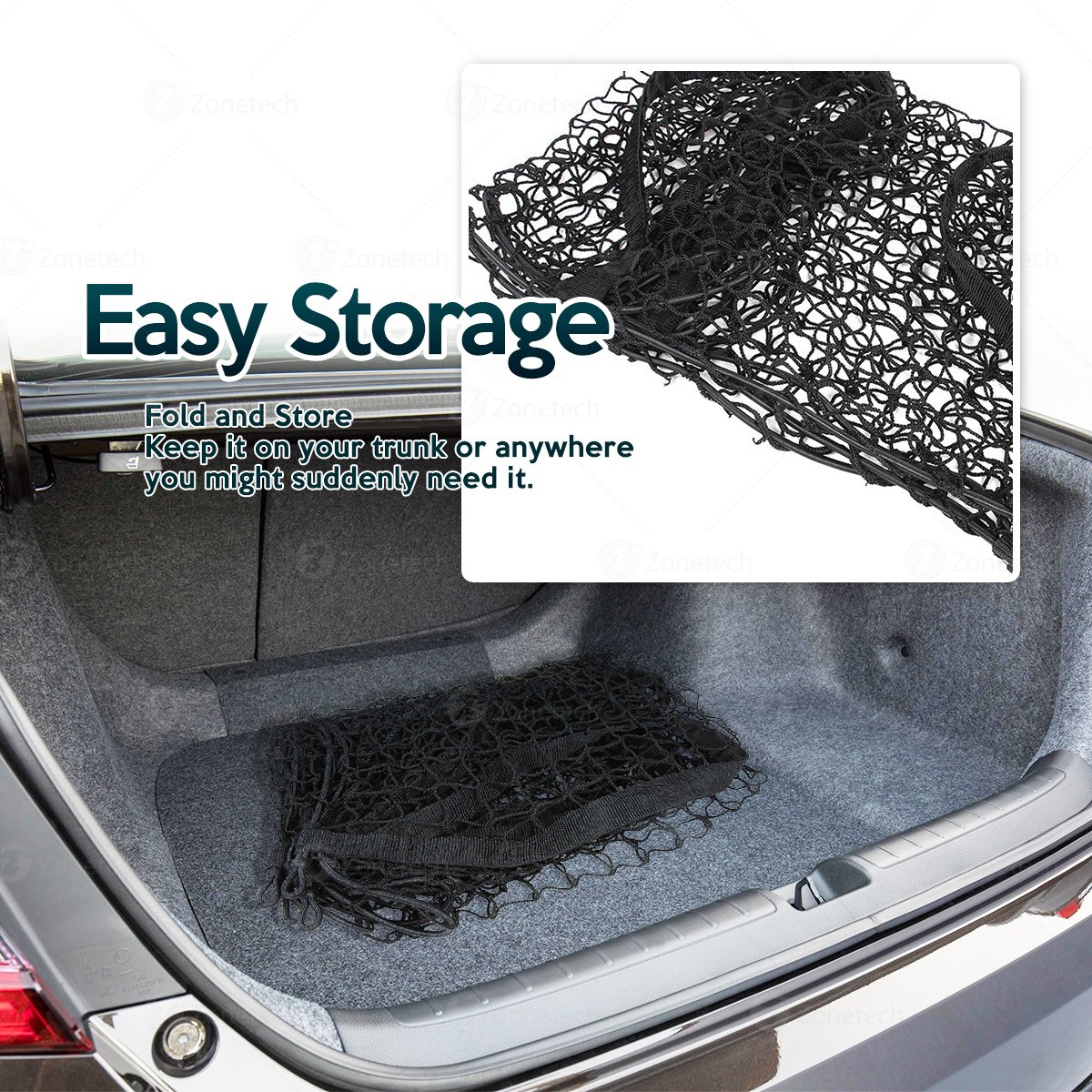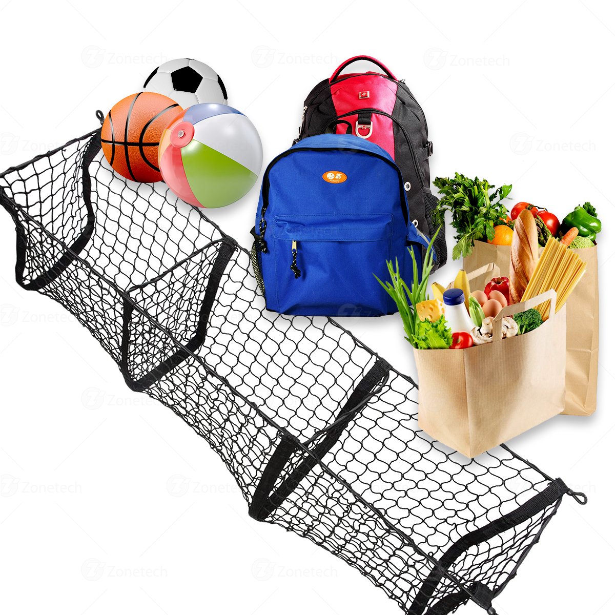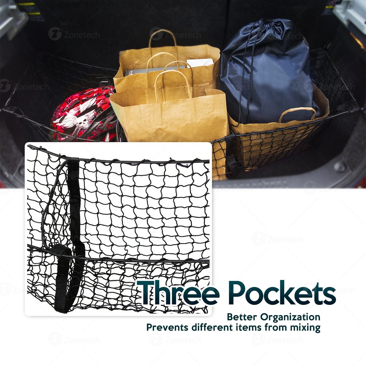 CLUTTER FREE - The Zone Tech organizer keeps your trunk and storage area organized and clutter free. The storage net holds everything in place where you put it. The Zone tech storage net features thre...View More - Specification