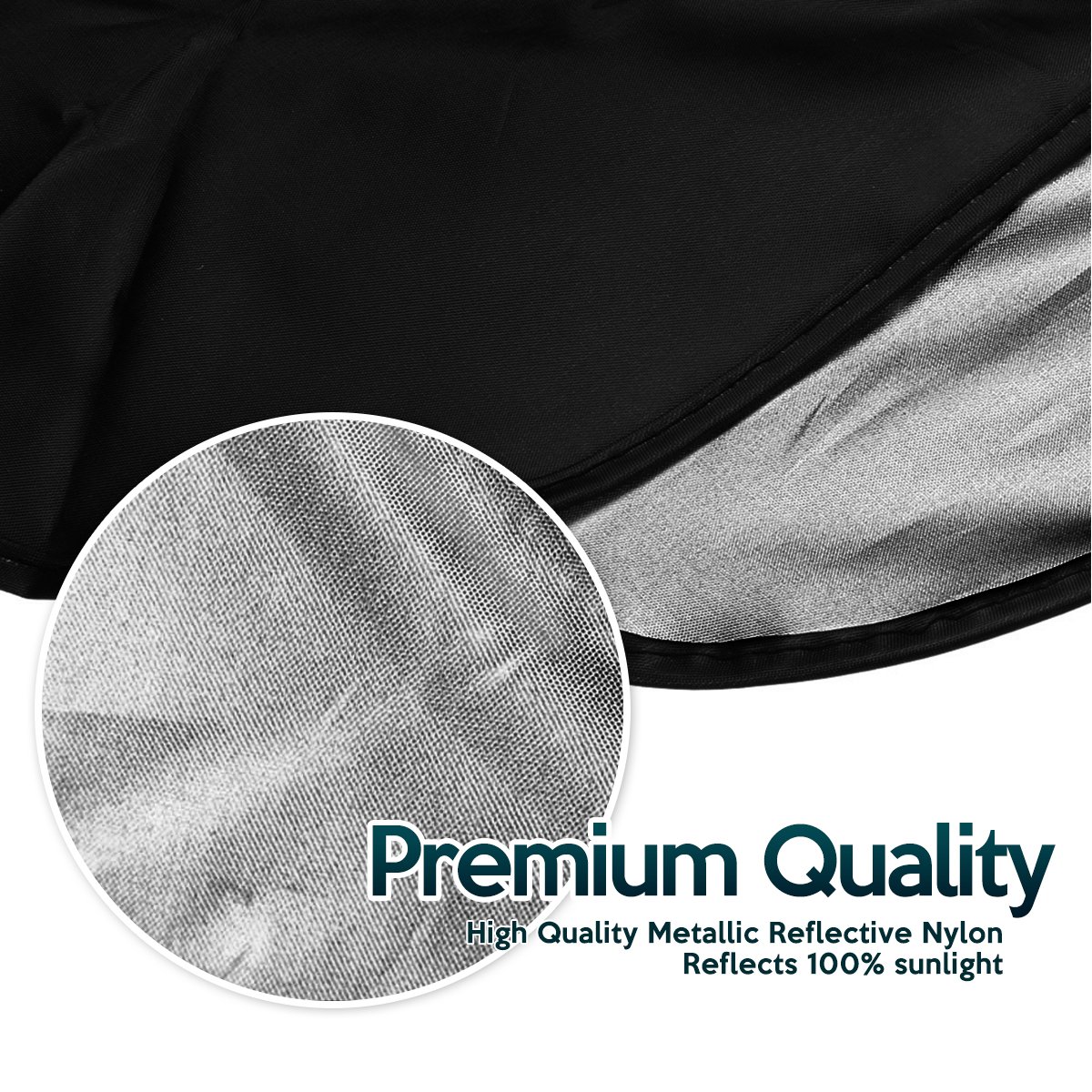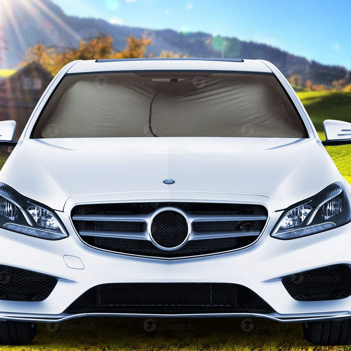 The Zone Tech foldable sun shade works like a Solar Shield. Instead of the sun hitting and penetrating your car its metallic surface Reflects it right off. As a result the temperature in your car remains Nice and cool. If your car is cool, then so are your seats and steering wheel.