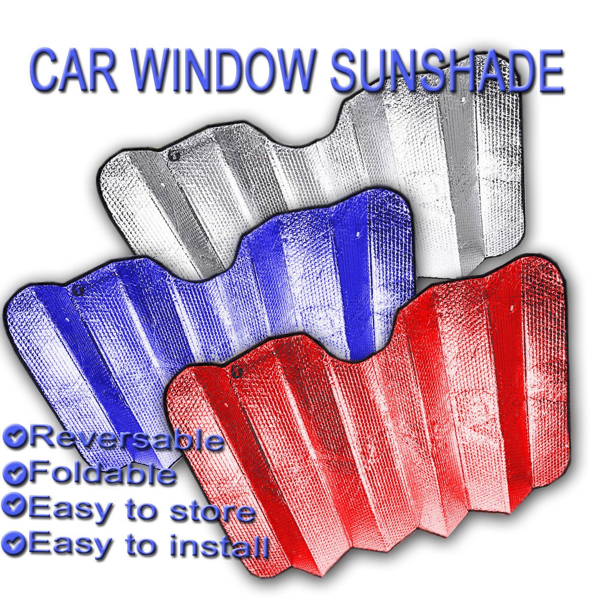 The sun shade can be folded and can fit almost anywhere. It is a practical compact affordable sun shade. The sun shades is universal in size. Suitable for all car winshield.