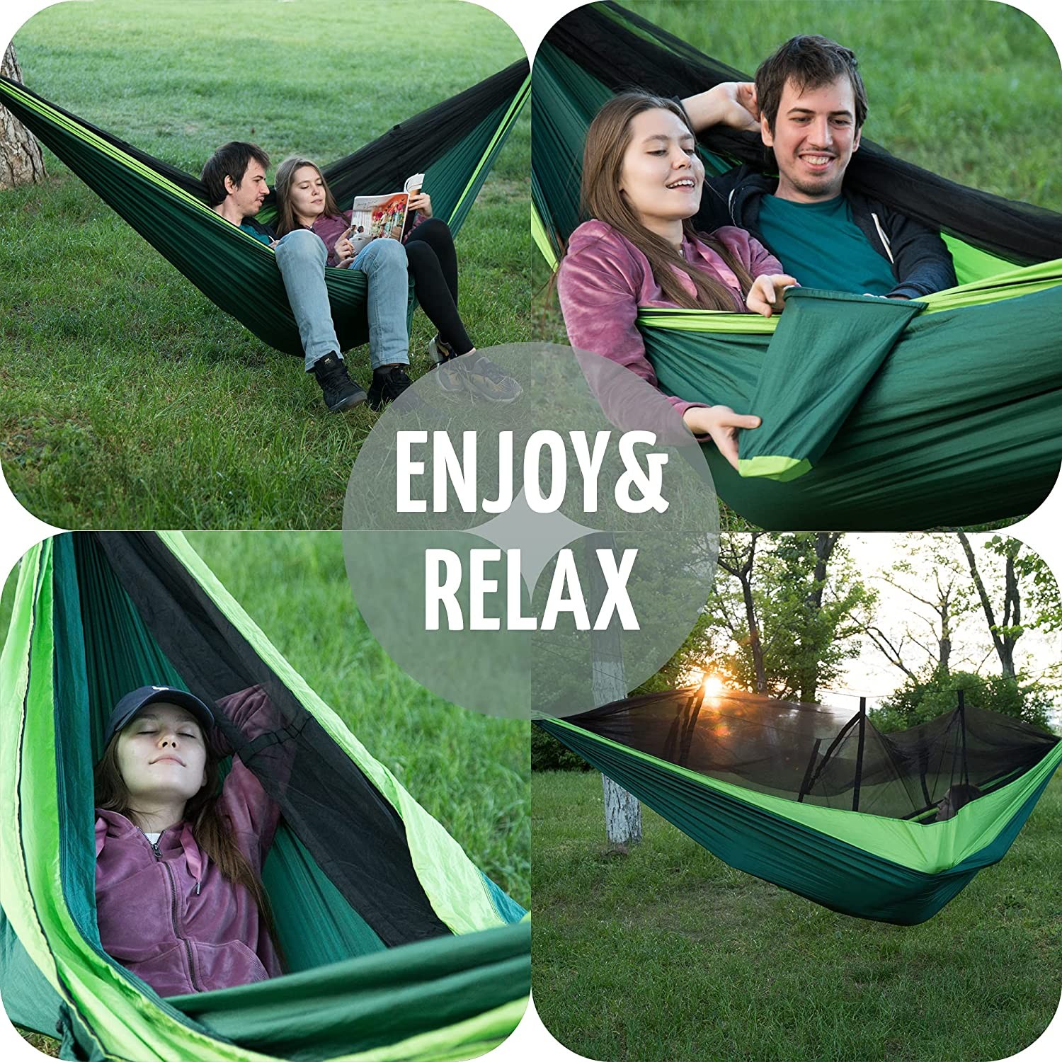 Zone Tech Camping Hammock w/ Mosquito Net - Premium Quality Large Portable Travel Camping Outdoor Indoor Hammock with Tree Straps, Insect Net- Single & Double Person Use- Backpacking, Hiking, Beach