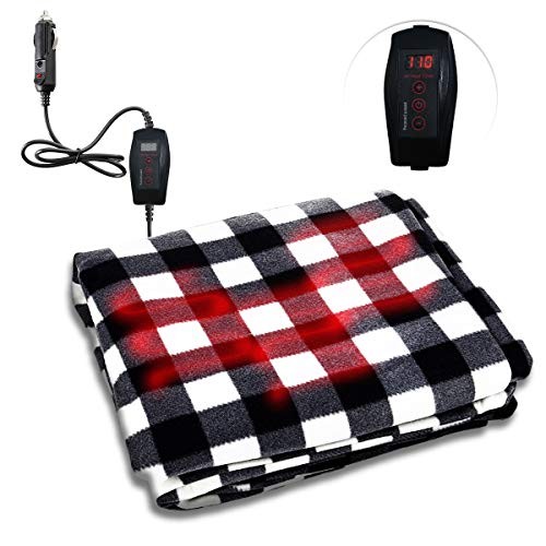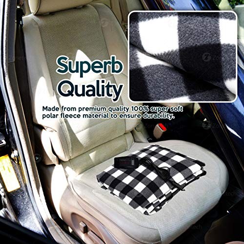 Zone Tech Car Heated Travel Blanket – Black and White Premium Quality 12V Automotive Comfortable Heating Car Seat Blanket Great for Winter