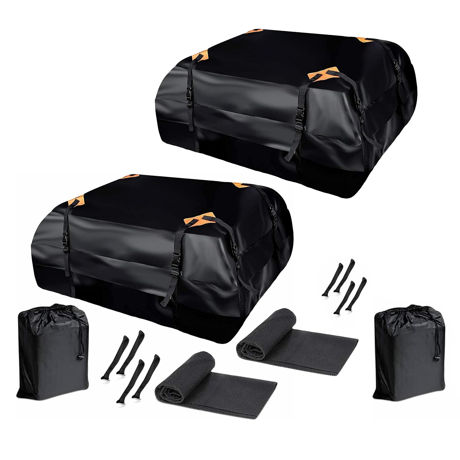 Zone Tech Car Roof Cargo Bag Water Resistant With a Protective Anti Slip Mat – 2 Pack 8 Reinforced Premium Quality Straps Rubberized Extra Cushioning Car Roof Pad, Travel, Touring, Road Trips for Car, SUV