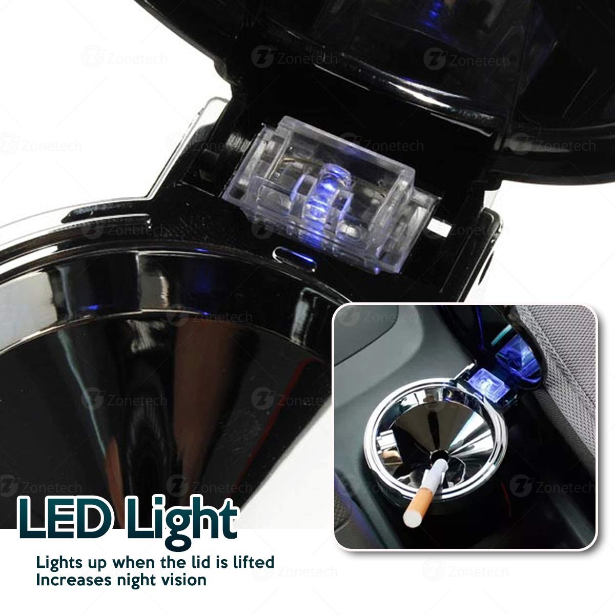 COOL BLUE LIGHT - The Zone Tech smokeless ash tray has cool blue LEDs that lights up when you lift the lid. The LED illumination increases night vision and gives you easy visual access to the tray.