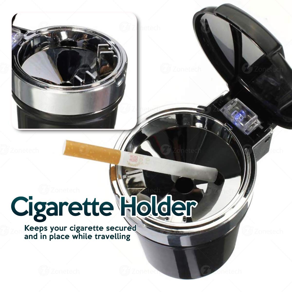 SMOKE DIFFUSER - The Zone Tech smokeless ash tray features a smoke diffuser that lets you have a cigarette smoke-free car. The cover closes securely thereby keeping the smell from spreading or lingering.