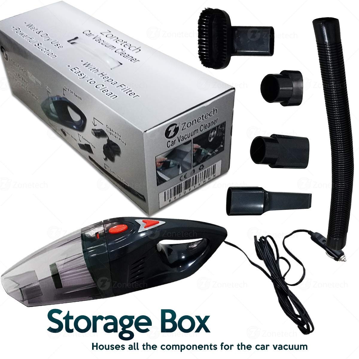 Zone Tech Car Vacuum Cleaner - Premium Quality Strong Suction Multiple Combination Car Vacuum