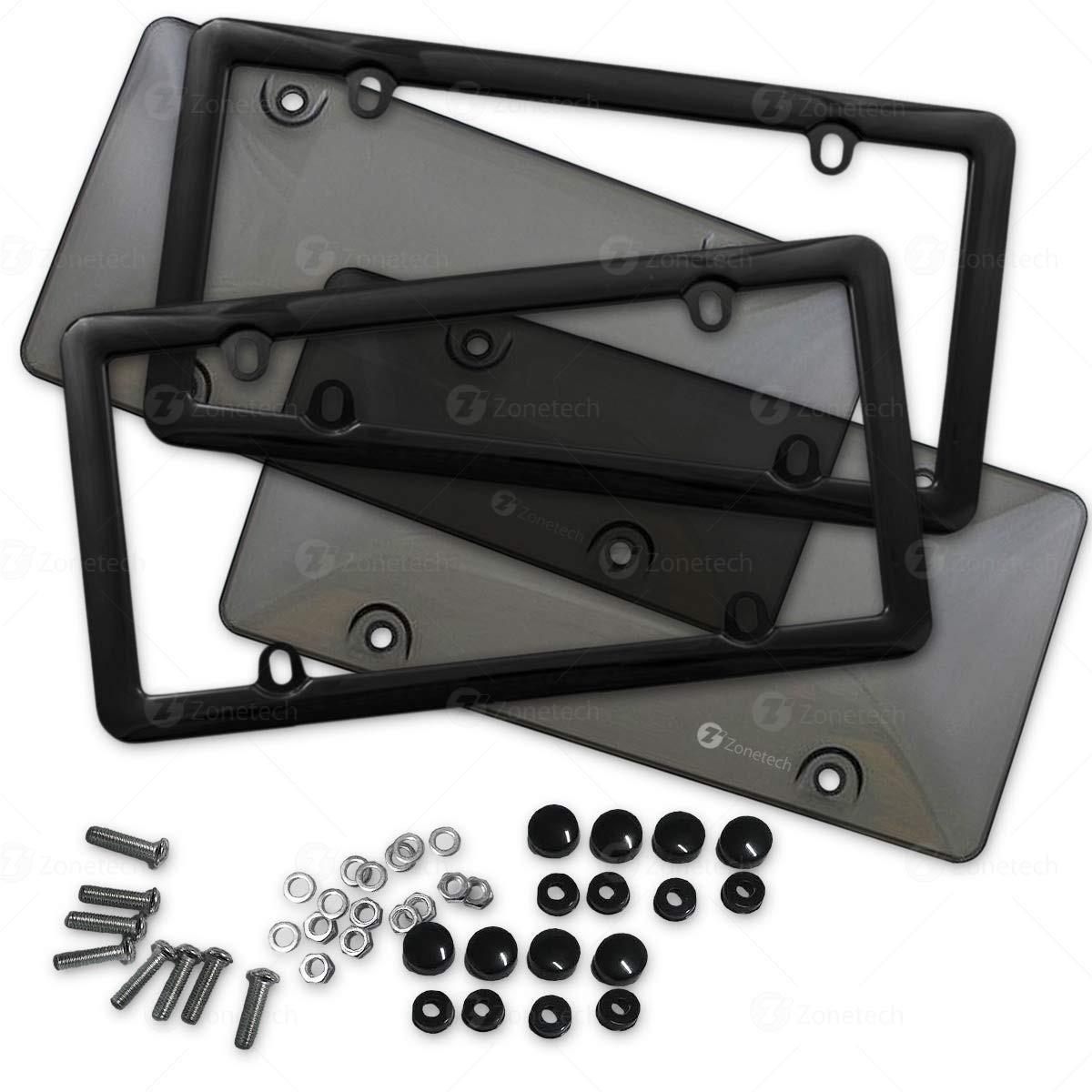 Zone Tech Clear Smoked Unbreakable License Plate Shields Combo - 2-Pack Novelty/License Plate Clear Smoked Unbreakable Bubble Shields with Frames