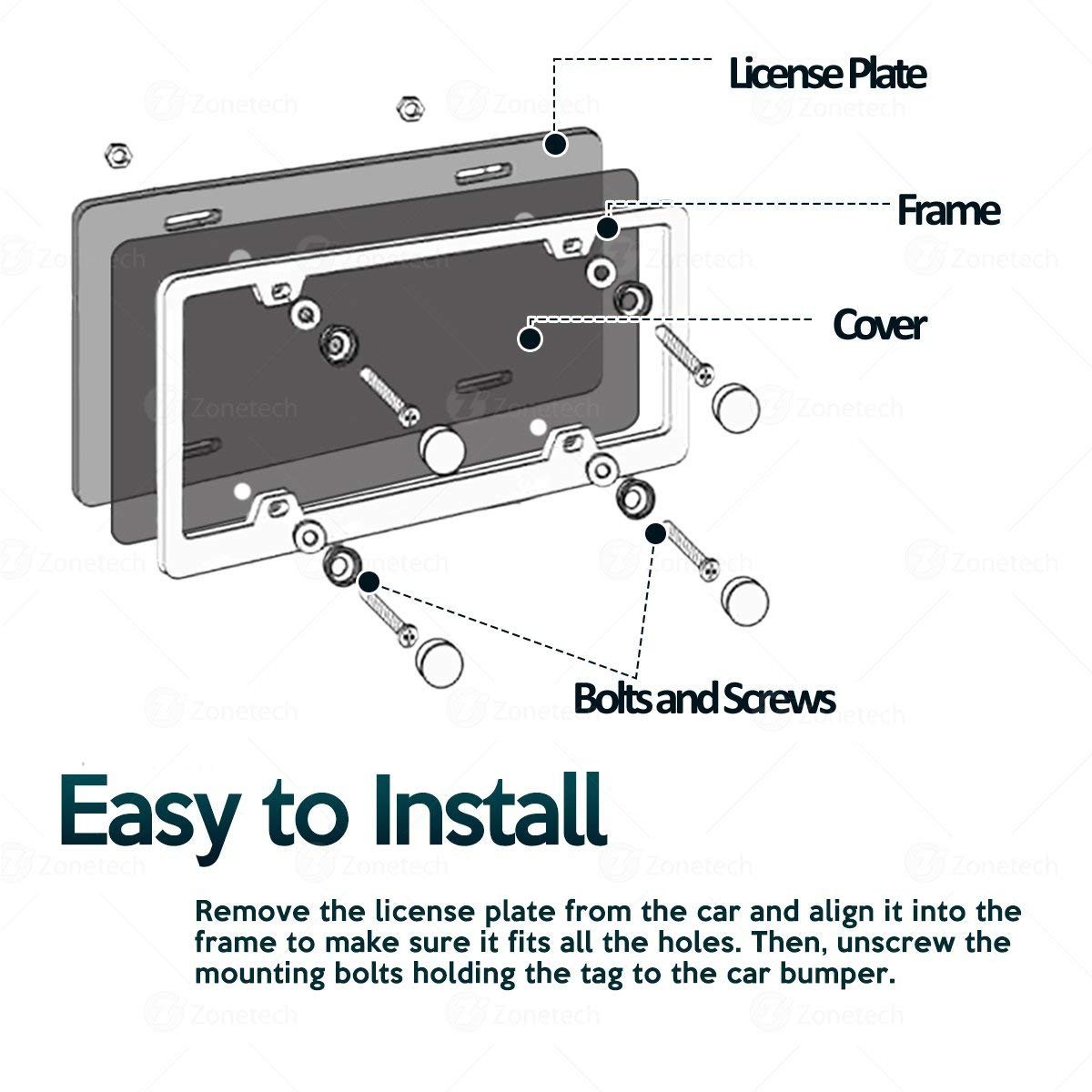 ► PROTECTION - The Zone Tech license plate shields provides protection from the elements and extends away from the plate keeping them looking clean and new. The license plate cover has UV protection helps prevent yellowing and cracking. This also limits the chance to have wounds due to physical contact with license plate.