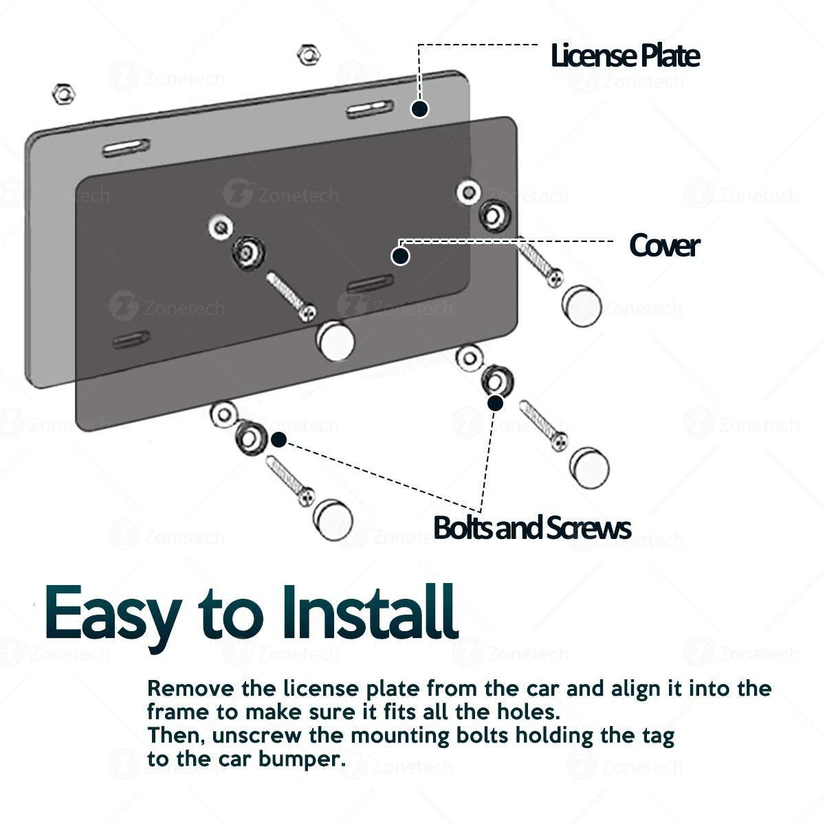 ► PROTECTION - The Zone Tech license plate shields provides protection from the elements and extends away from the plate keeping them looking clean and new. The license plate cover has UV protection helps prevent yellowing and cracking. This also limits the chance to have wounds due to physical contact with license plate.
