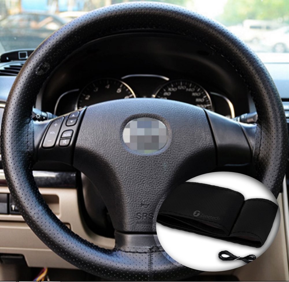 PREMIUM MATERIAL - The Zone Tech steering wheel cover is made of high grade and durable PU leather material that will surely last superbly year after year without fading. The steering wheel cover is made to be soft, clean, pore exquisite and comfortable to handle.