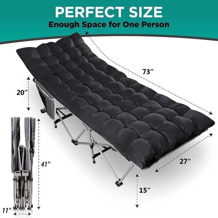 - Comfortable Sleeping Surface: Includes a padded cot pad/mattress for added cushioning and comfort.