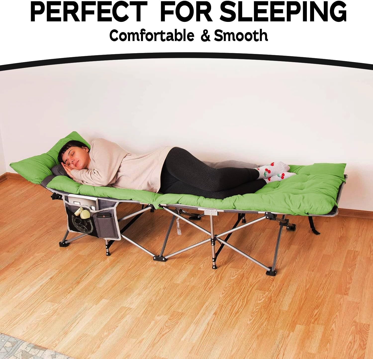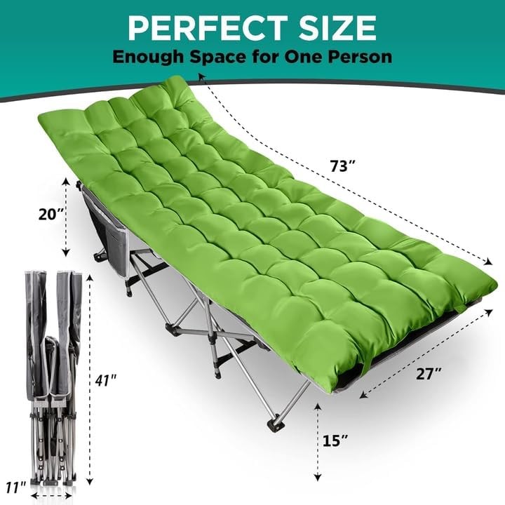 - Comfortable Sleeping Surface: Includes a padded cot pad/mattress for added cushioning and comfort.
