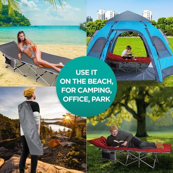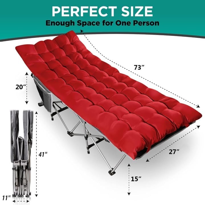 - Comfortable Sleeping Surface: Includes a padded cot pad/mattress for added cushioning and comfort.