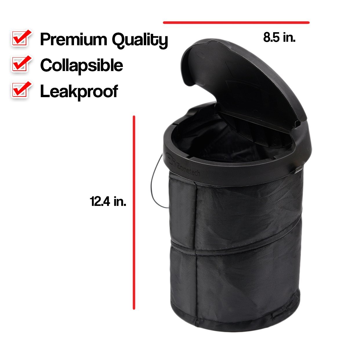Zone Tech Fully Leak Proof Vehicle Waste Bag – Classic Black Premium Quality Black Universal Traveling Portable Car Trash Can