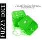 SOFT FABRIC These plush dice are made of a very soft and furry fabric and a resiliently squishy foam. You sure want to squeeze 'em! The furry look of the dice makes them very easy on the eyes.