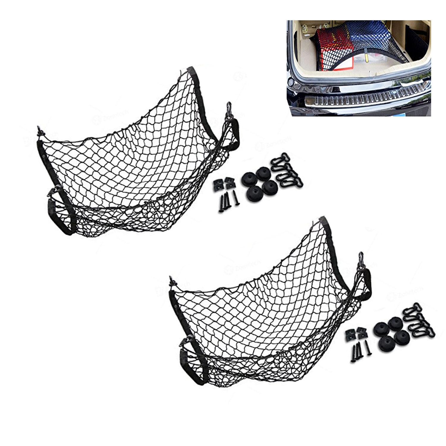 ► ADJUSTABLE - The Zone Tech storage net can adjust to fit most trunks, pickup truck beds or SUV rear cargo space. This Zone Tech storage net can be adjusted from 44 inch to 56 inch in width, with a 12 inch depth and 12 inch height. ► STRETCHABLE - The Zone Tech storage net is stretchable to fit the span the width of the pickup bed or wherever it is needed. The storage net stretches around your stuff and you can cram even more things in it than ever before. ► CLUTTER FREE - The Zone Tech organizer keeps your trunk and storage area organized and clutter free. The storage net holds everything in place where you put it. The Zone tech storage net features large pockets which help to or...View More - Specification