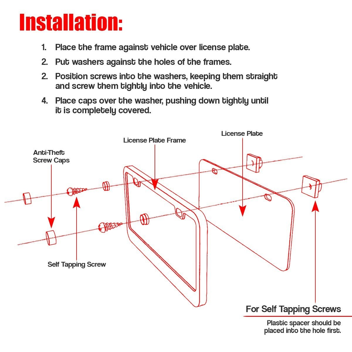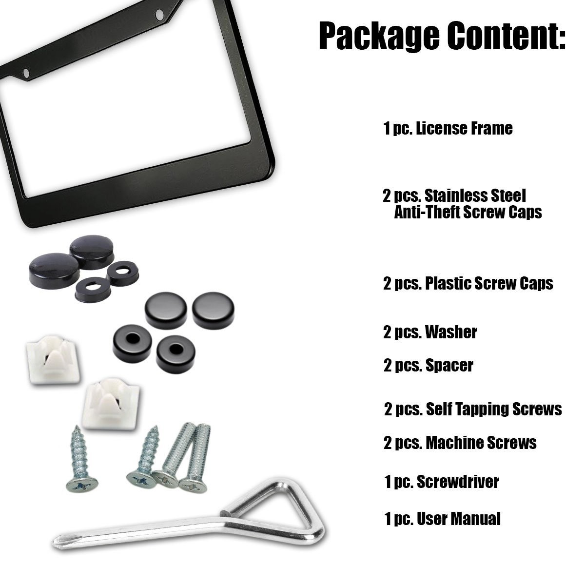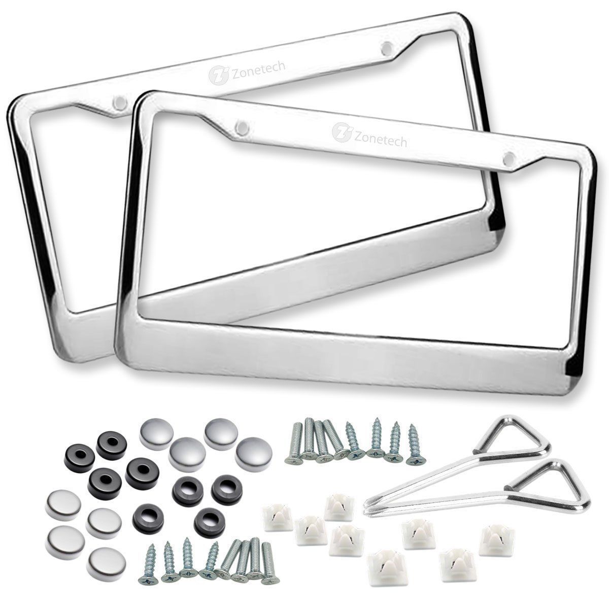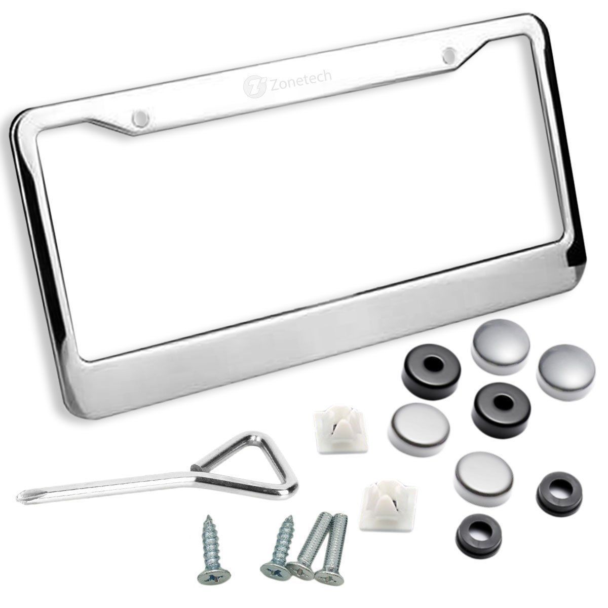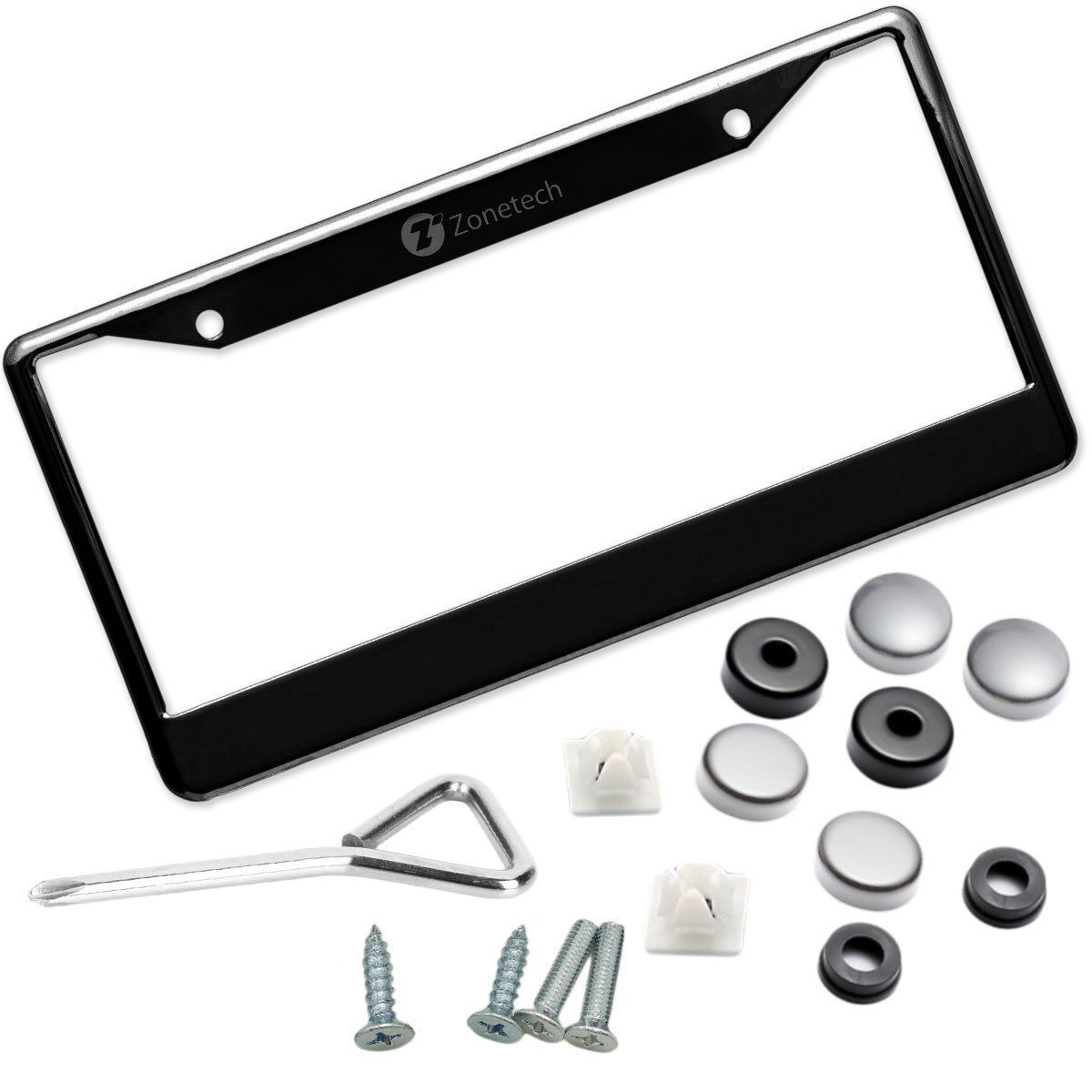 ► SMART DESIGN - The Zone Tech license plate frame is designed not to block registration tags in all four corners. ► DURABLE - The Zone Tech license plate frame is lightweight, strong, and rust-free. It is powder coated black matte finish, so it will never peel off. ► PREMIUM QUALITY - The Zone Tech license plate frame is made from premium quality aluminum to ensure maximum strength and durability for long lasting usage. ► USER FRIENDLY - The Zone Tech license plate frame is user friendly and is easy to install. See back of package for installation instructions. It installs in minutes with no special tools required. ► STANDARD FIT - The Zone Tech license plate frame is designed...View More - Specification