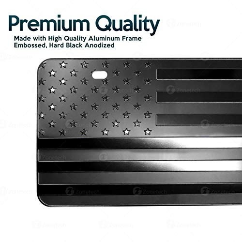 Zone Tech Monochrome USA Flag License Plate - Premium Quality Thick Durable Embossed Novelty American Patriotic Flag