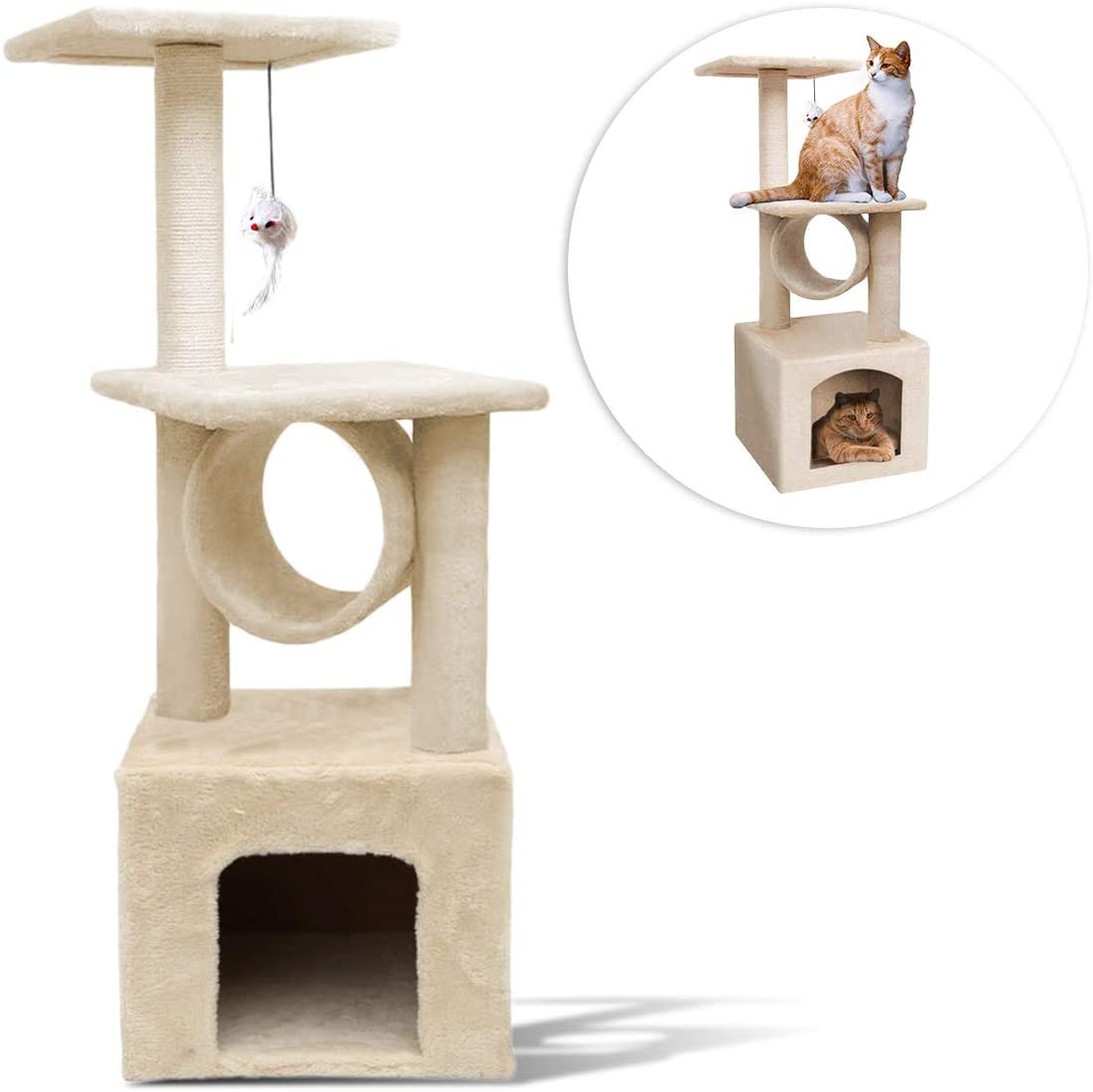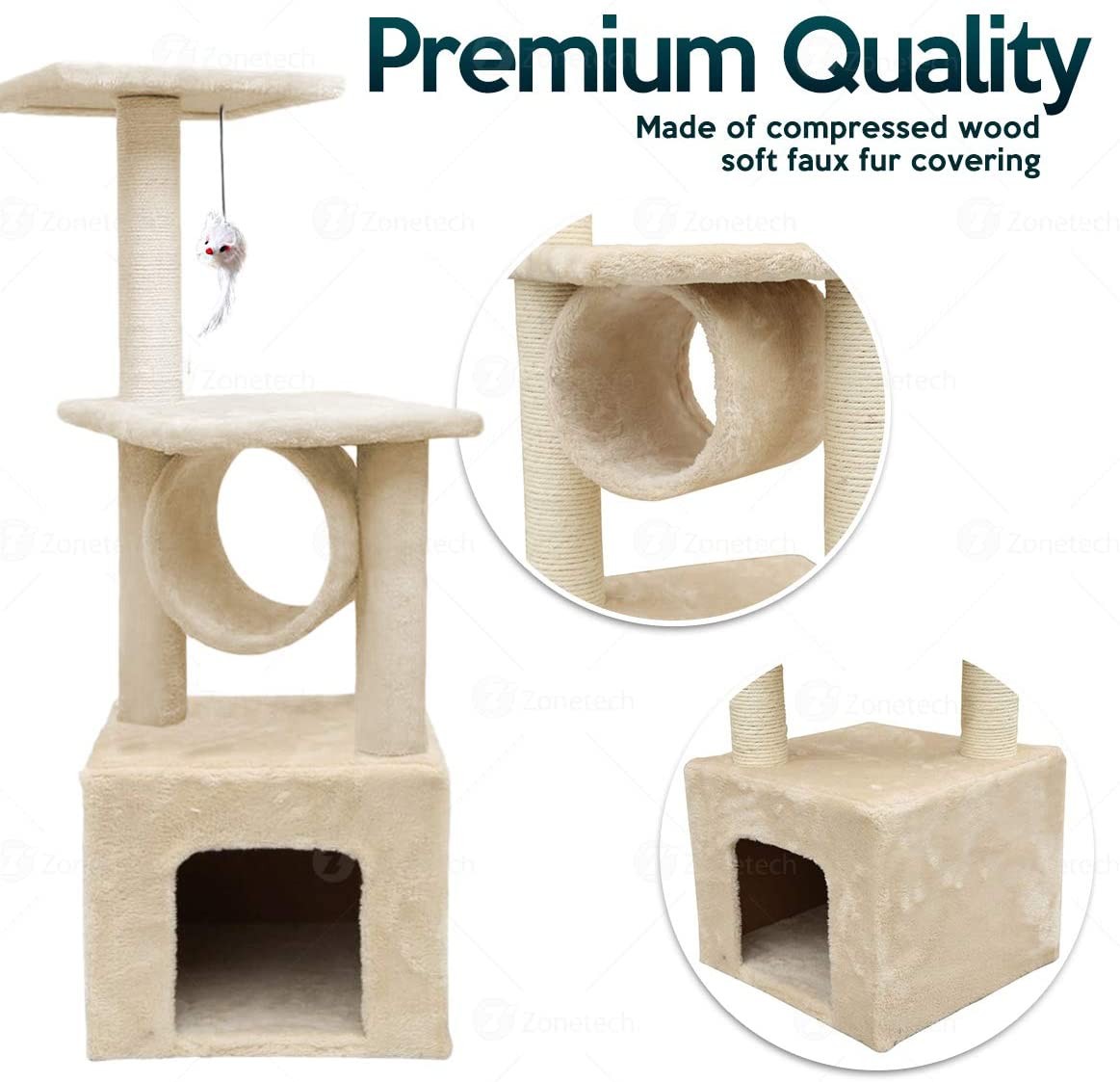 Zone Tech Pet Cat Tower Tree - Premium Quality Large Multi-Level Safe Cat Tree Stand House with Scratching Posts Tower Playing Spot Condo
