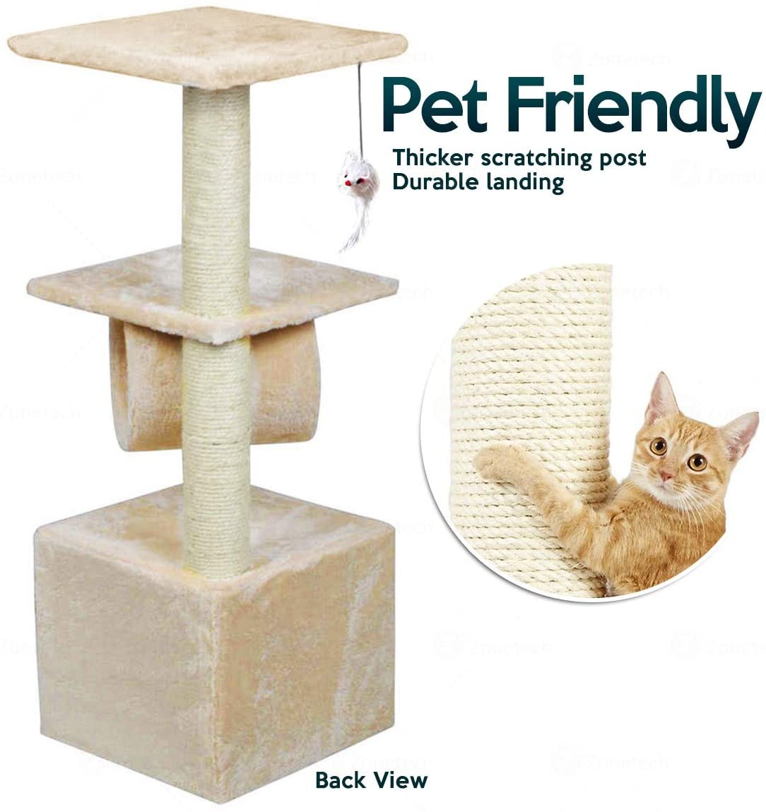► THICK SCRATCH POST - The Zone Tech cat tower is equipped with thick scratching post fully wapped in natural sisal rope. Allowing your cat to sharpen their claws through scratching. This stops them from pawing up and harming your furnishings. ► SOFT COVERING - The Zone Tech cat tower is covered with soft plush covering. Perfect for your little felines to get cozy while taking a nap or playing. ► CAT-FRIENDLY - The Zone Tech cat tower is a friendly luxury for cats to play, lounge, run around with. ► PREMIUM QUALITY - The Zone Tech cat tower are made with premium quality environment and pet friendly materials to ensure maximum strength and du...View More - Specification