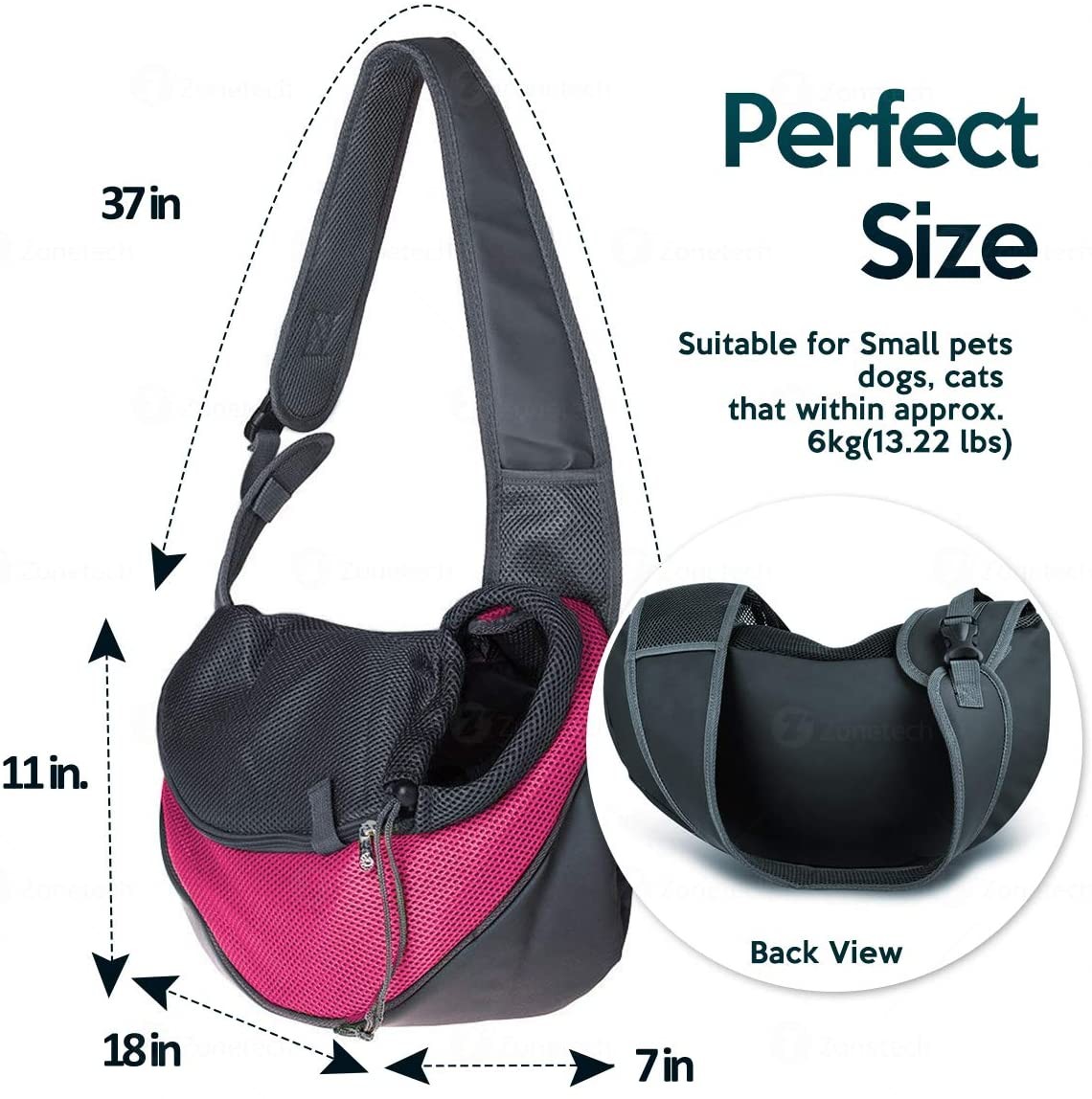 Zone Tech Pet Sling Bag Carrier - Premium Quality Adjustable Breathable Safe Stylish Travelling Pet Hands-Free Sling Bag Perfect for Small Dogs and Cats