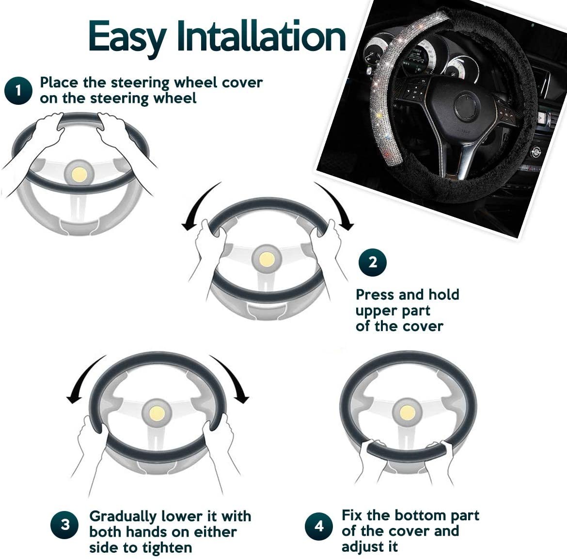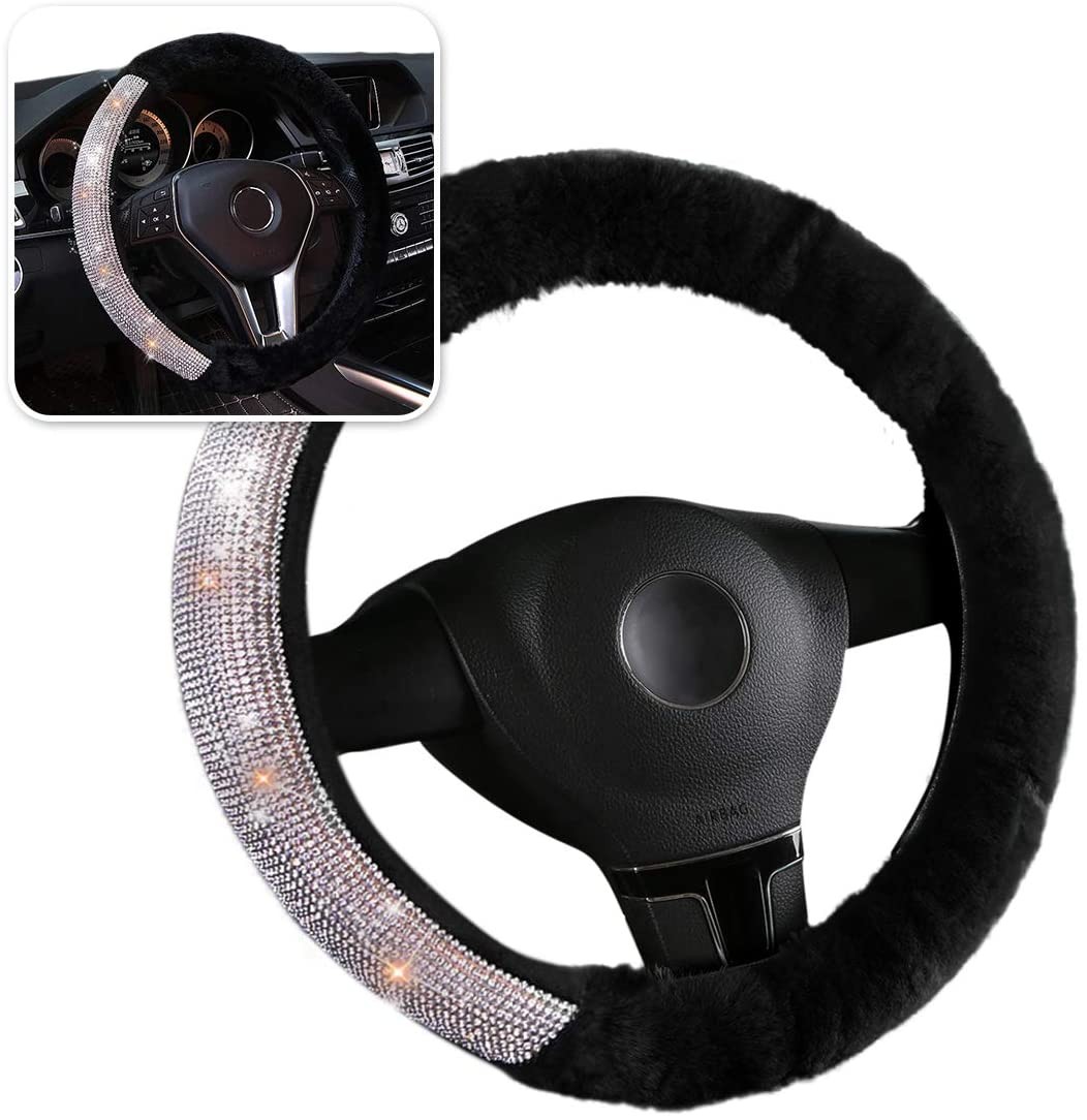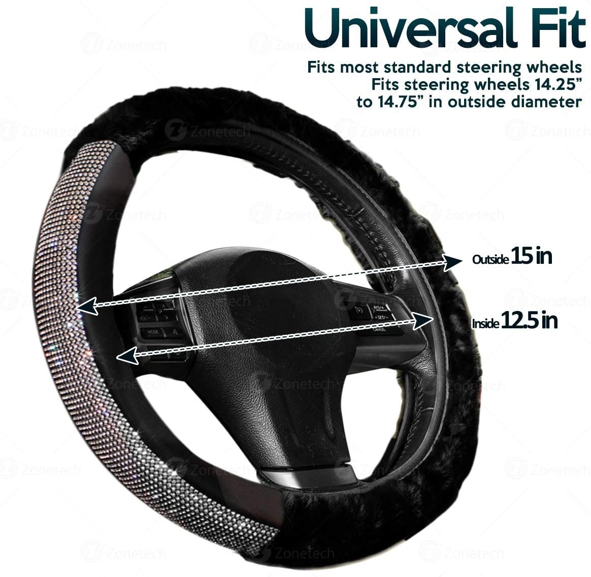 Zone Tech Plush with Diamond Bling Steering Wheel Cover - Premium Quality Diamond Bling Crystal with Plush High-grade Imitation Cashmere Wool Steering Wheel Cover