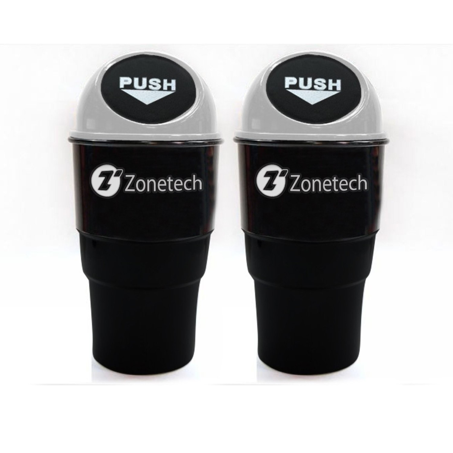Zone Tech Portable Mini Car Garbage Can – Classic Black and Gray Premium Quality Black Universal Traveling Portable Car Trash Can 2 pack