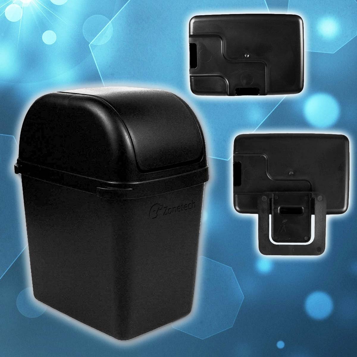 Zone Tech Portable Mini Car Garbage Can with Latch Grip – Classic Black Premium Quality Black Universal Traveling Portable Car Trash Can
