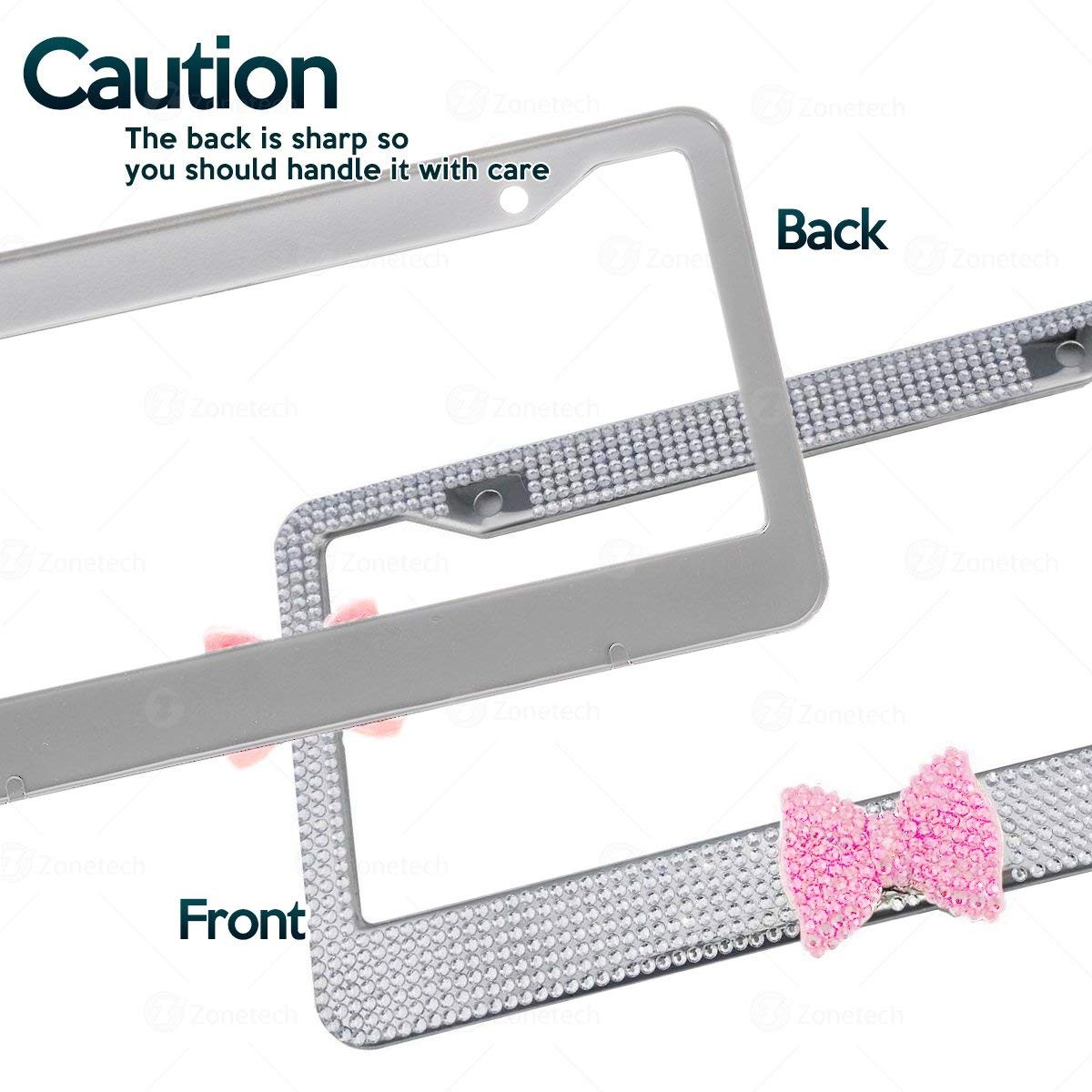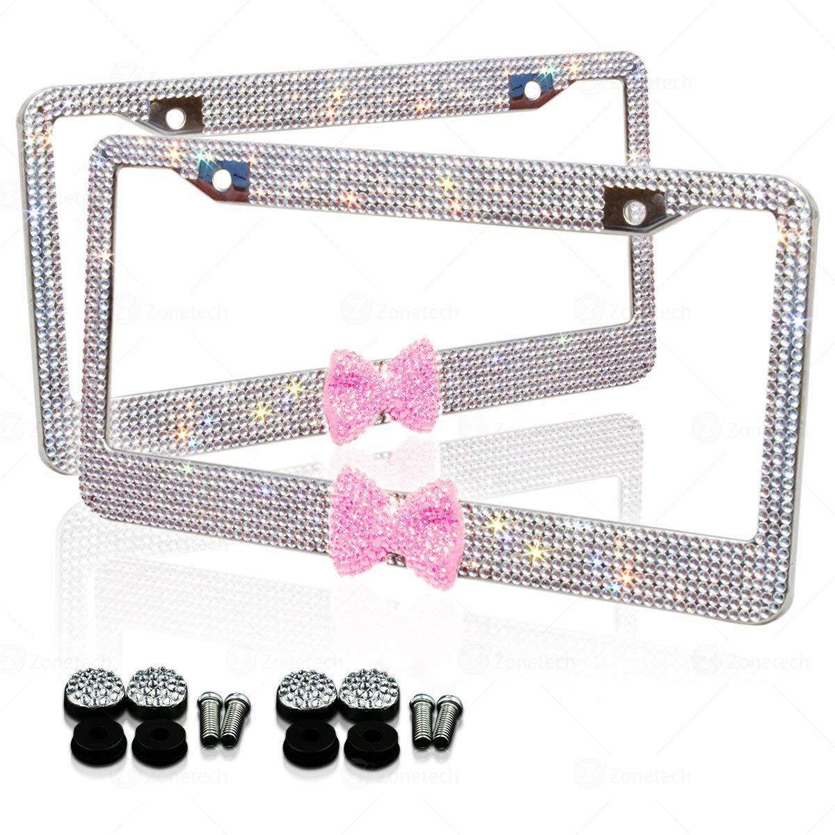 ► SMART DESIGN - The Zone Tech license plate frame is designed not to block registration tags in all four corners. The whole frame is consists hundreds of shiny crystals. The bottom of the frame has a full 8 rows of shiny bling.