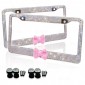Zone Tech Shiny Bling License Plate Cover Frame - Silver Crystal with Red Ribbon Bow Premium Quality Novelty/License Plate Frame with Mounting Screws