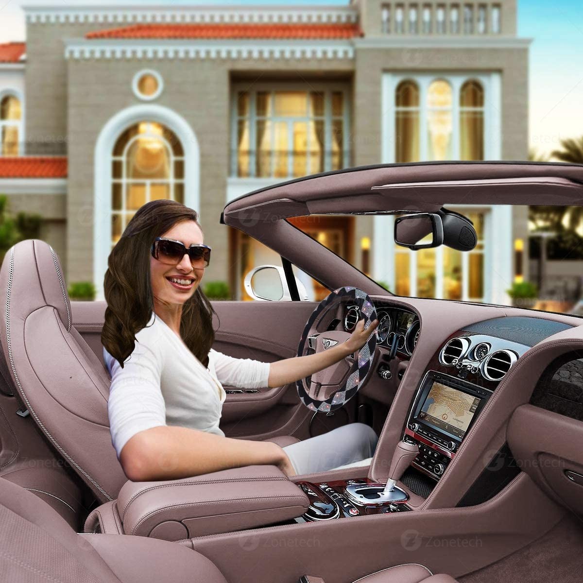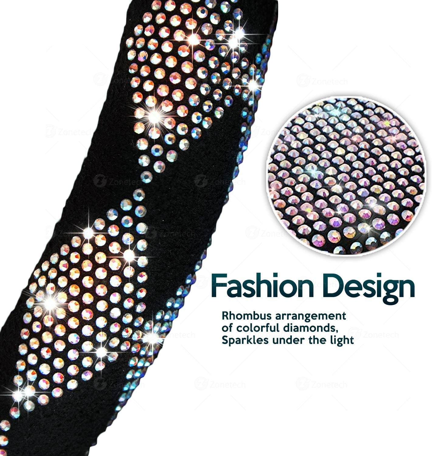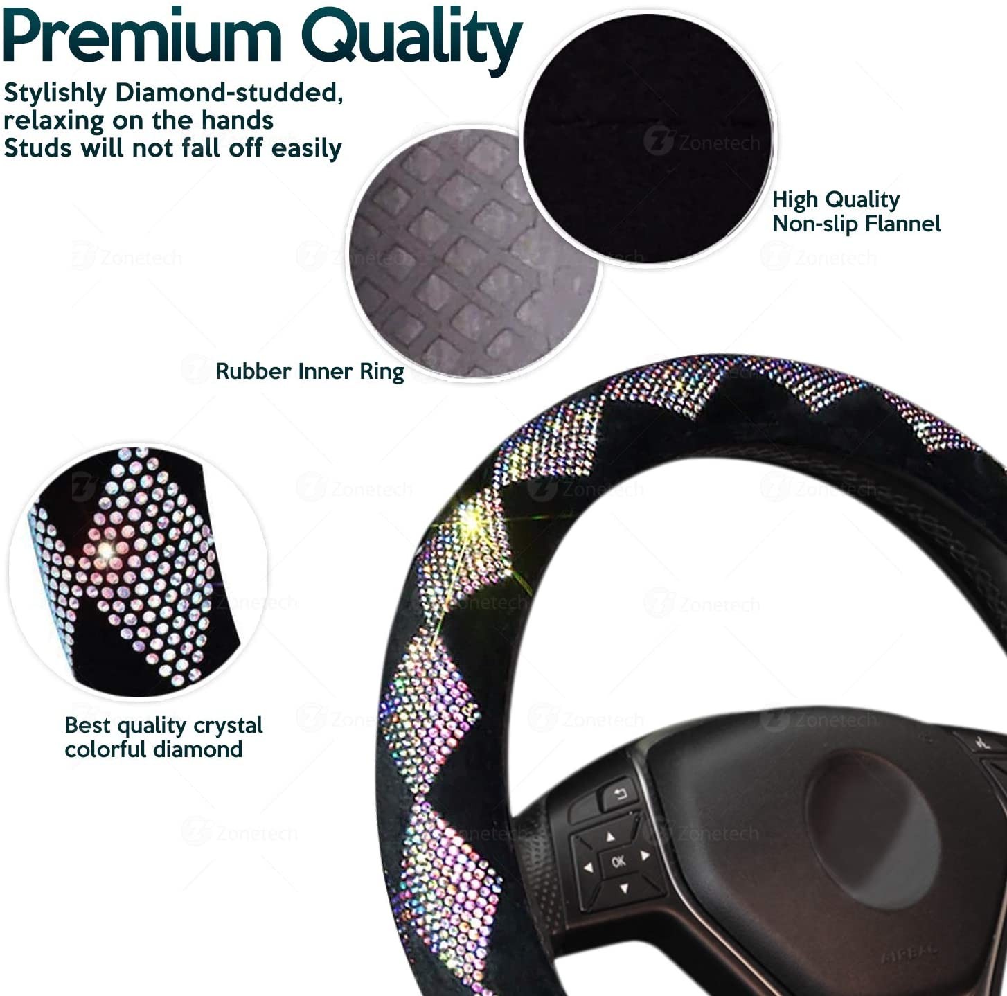 Zone Tech Shiny Dimaond Bling Steering Wheel Cover - Premium Quality Diamond Bling Crystal Steering Wheel Cover with PU Leather Backing