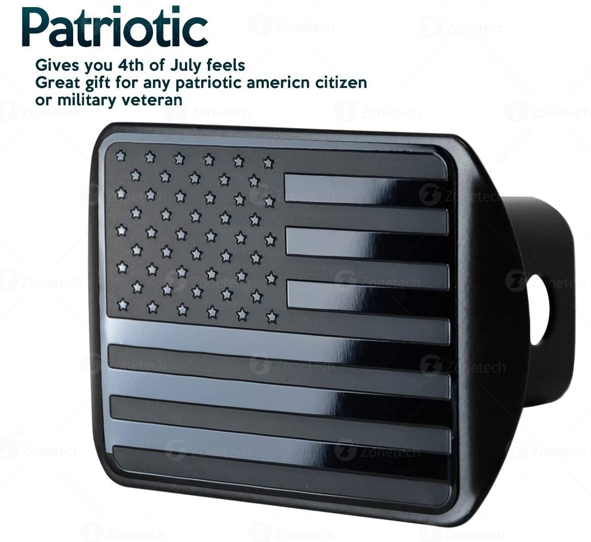 Zone Tech Tactical USA American Flag Hitch Cover - Premium Quality Black Thick Durable Metal Novelty American Flag Trailer Plug Hitch Cover -US Patriotic Pledge of Allegiance