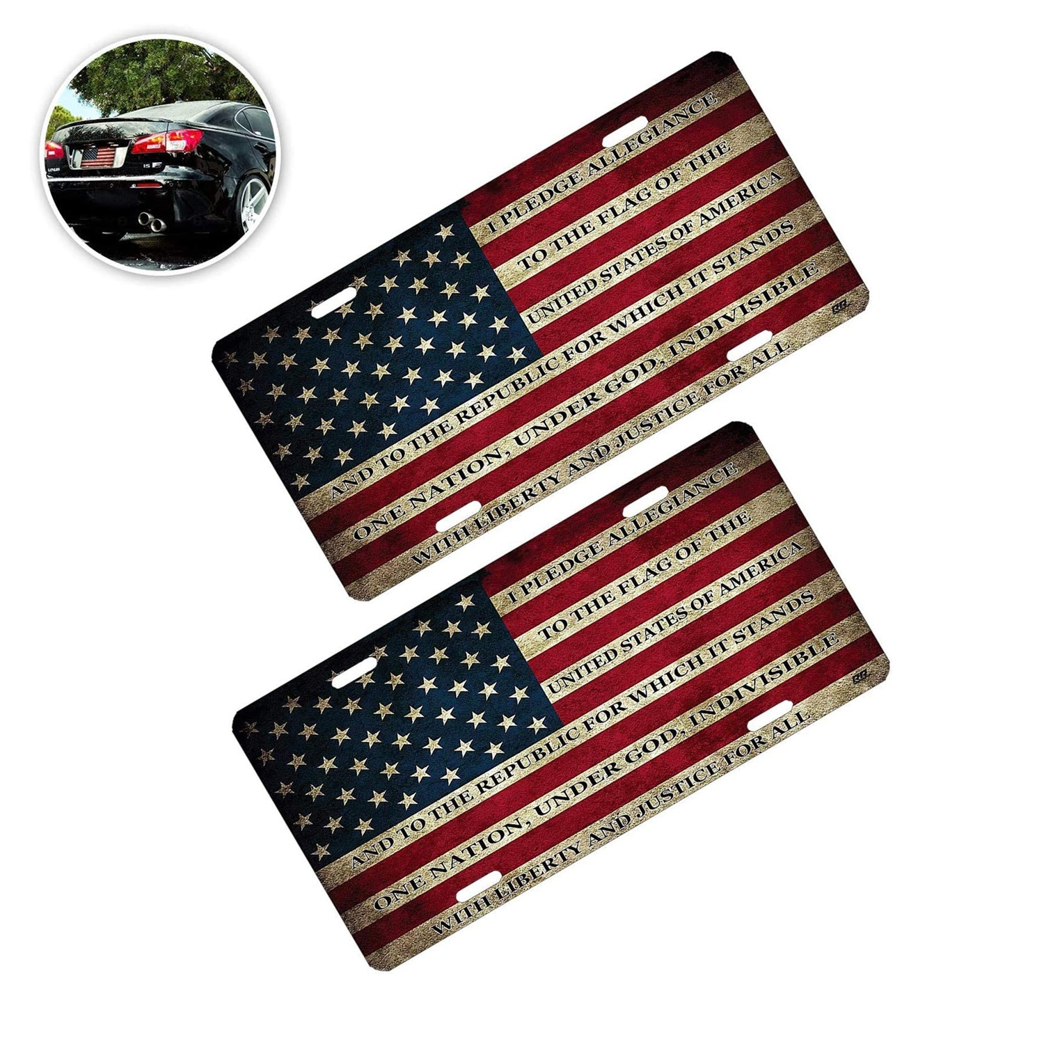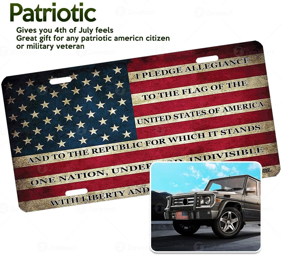Zone Tech Tactical USA Flag License Plate - Premium Quality 2 pack Thick Durable Novelty American Patriotic Pledge of Allegiance Car Tag Plate Cover